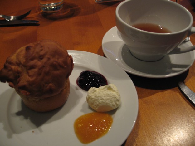 Det var diplomats egen teblandning (earl grey med en rökig touch), söta sconesmuffins med vispgrädde, aprikosmarmelad och drottningmarmelad…