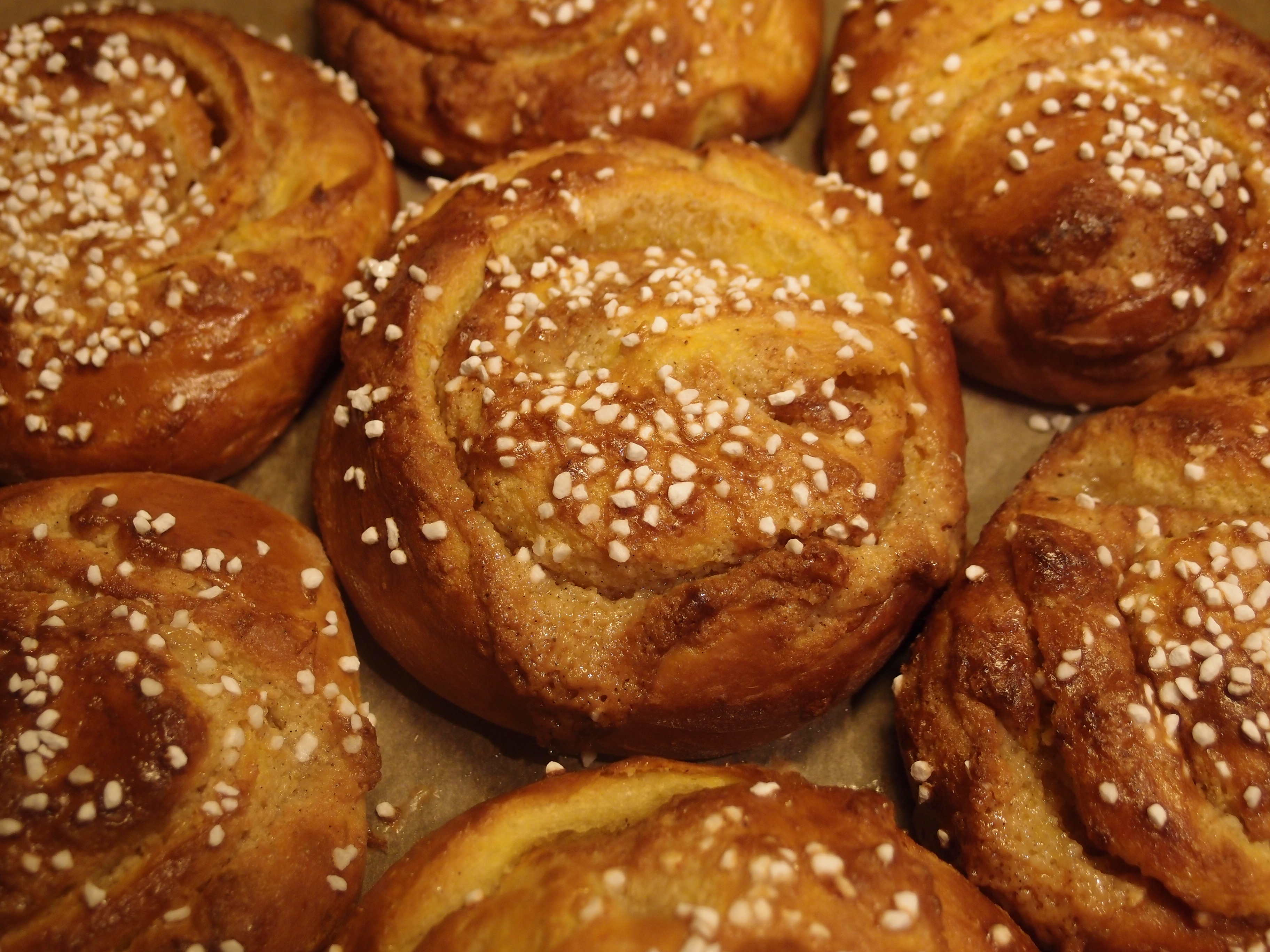 Jag kämpar hårt för att inte tjuvstarta julen med glögg eller pepparkakor i förtid. Men i söndags kliade mina fingrar och jag var bara tvungen att få baka. Lotten föll på saffransbullar. De vilar tryggt i frysen och vi är nu redo för kommande glöggmys här i Stockholm. (Och ja, jag har provsmakat dem.. mums!) Det här är en halvsats (av vanlig vetedeg) och blev ca 18-20 bullar. Mer får inte rum i frysen just nu…