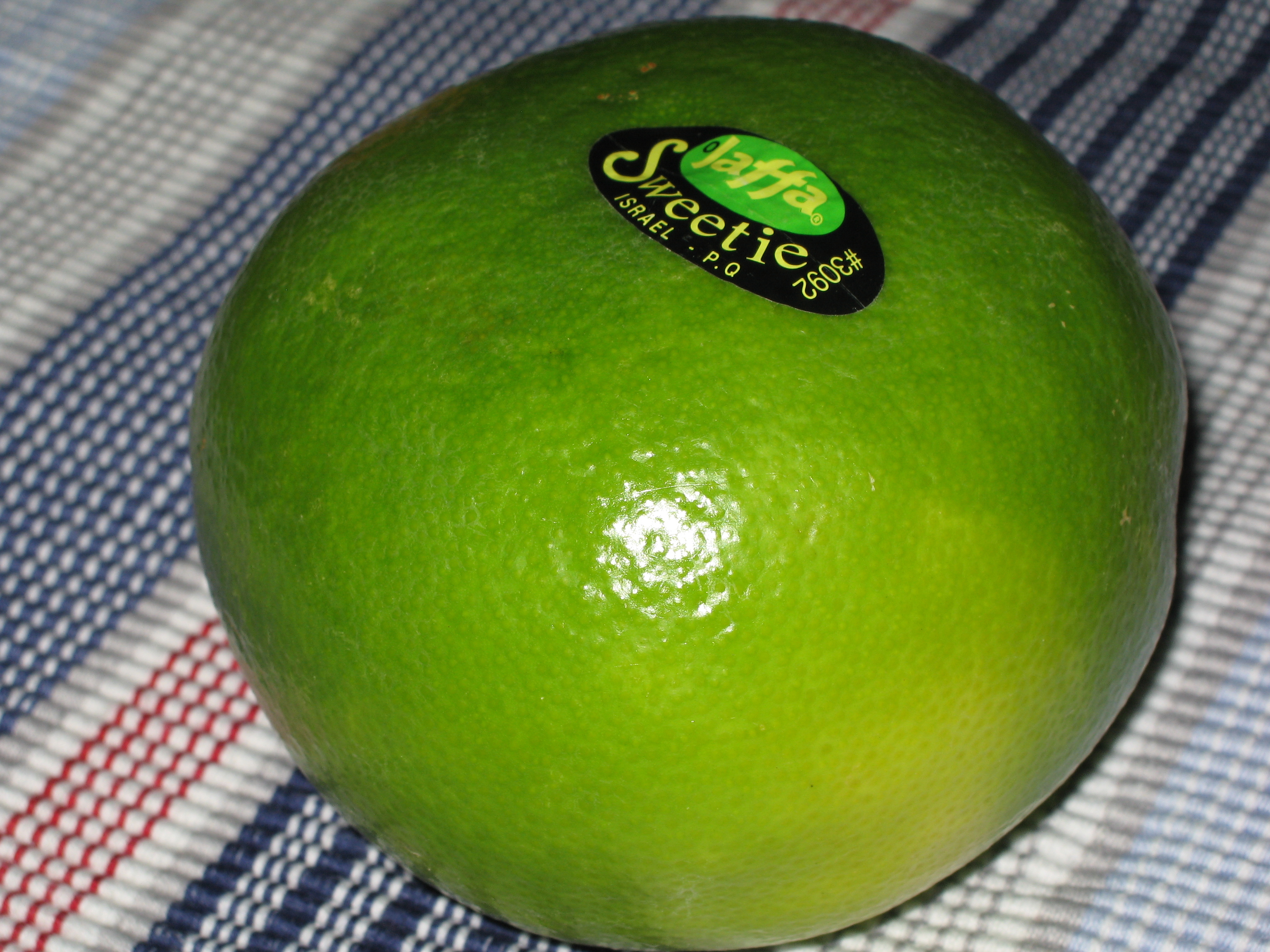 Den heter sweetie och är en citrusfrukt, närmare bestämt en korsning mellan grape och pomelo. Tyvärr så är den inte så rolig att äta. Likt sitt namn så är den sötare än grape men det är mest skal på frukten och när man äntligen kommer in på själva fruktköttet (efter alla sega hinnor) finns det inte mycket kvar. Man känner sig lite snuvad på storleken.
