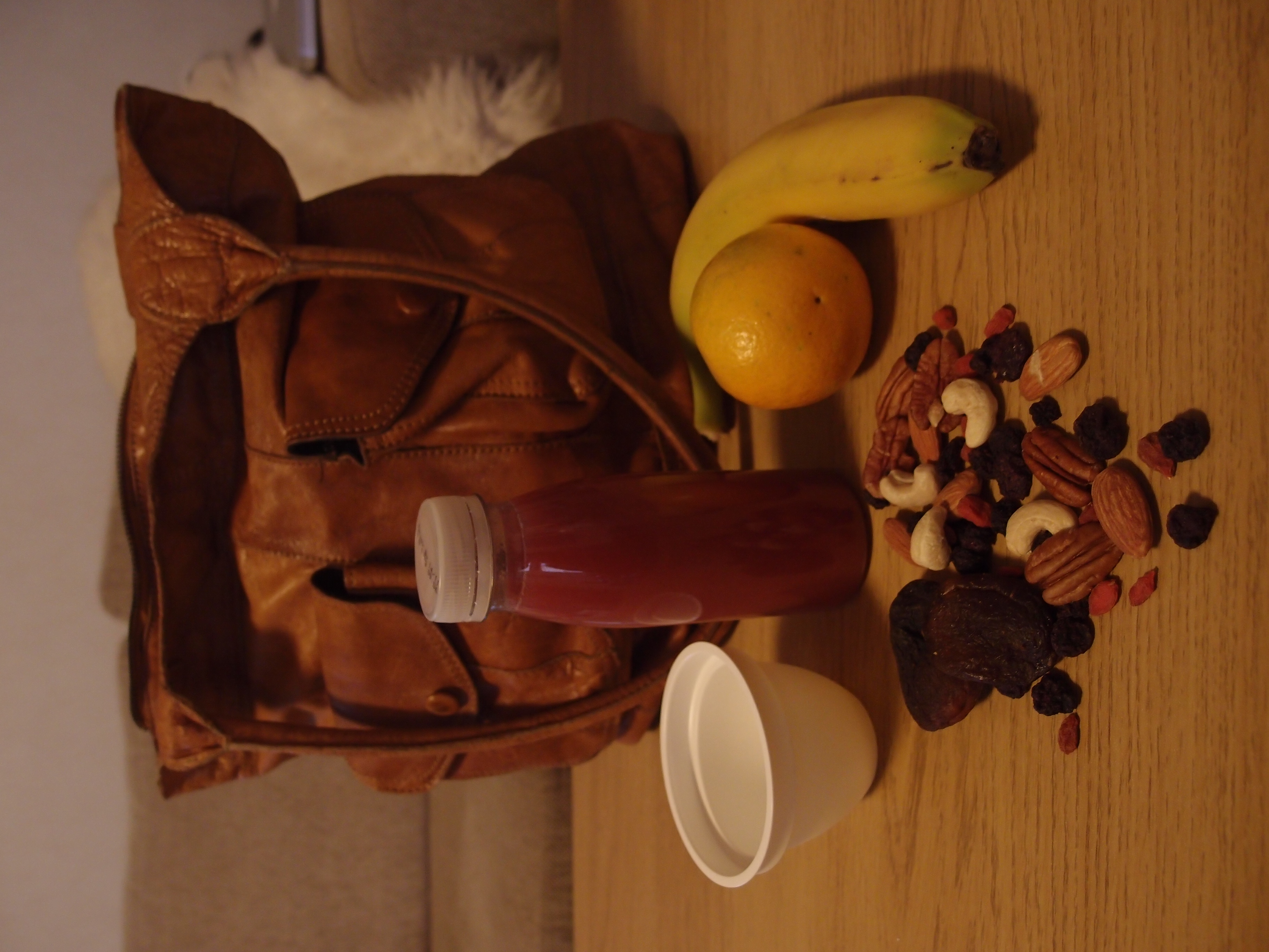 När jag ska iväg på stan el liknande har jag alltid med mig mellanmål i väskan. Jag vill inte riskera att jag står där inne på Pressbyrån och gör ett dåligt mellisval i form av godis eller korv med bröd när hungern gör sig påmind… Kyl och skafferi svämmar liksom över här hemma, dumt att inte äta av det man redan köpt hem.