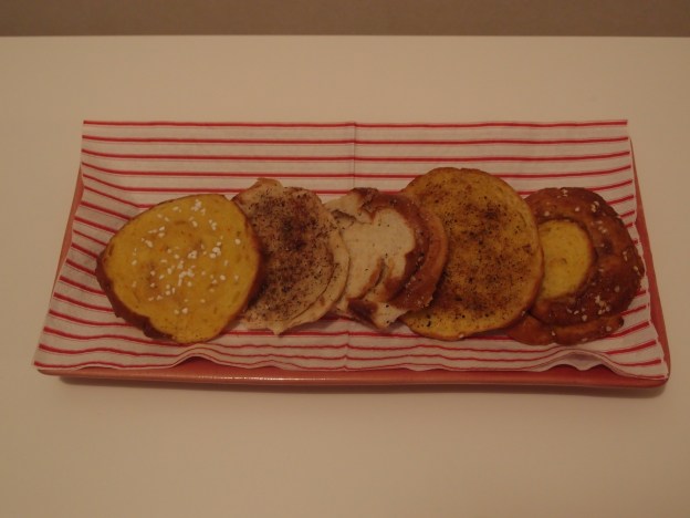 Skiva bullarna tunt och pensla dem gärna med smält smör eller bred på smör med en kniv. För extra god smak; strö över lite kanel och kardemumma (och ev pärlsocker). Välj ett av följande sätt för att torka dem.