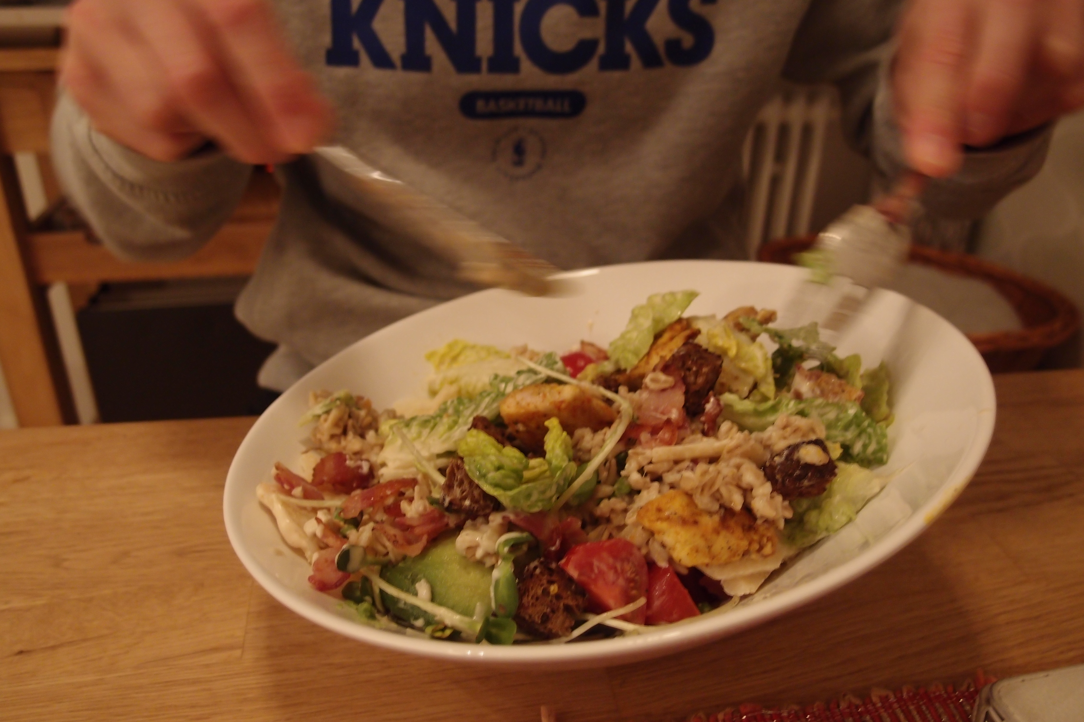 Daniel tillsatte mathavre och vevade runt allt med en himla fart. ”Vi borde äta sallad oftare” är ett gott betyg!