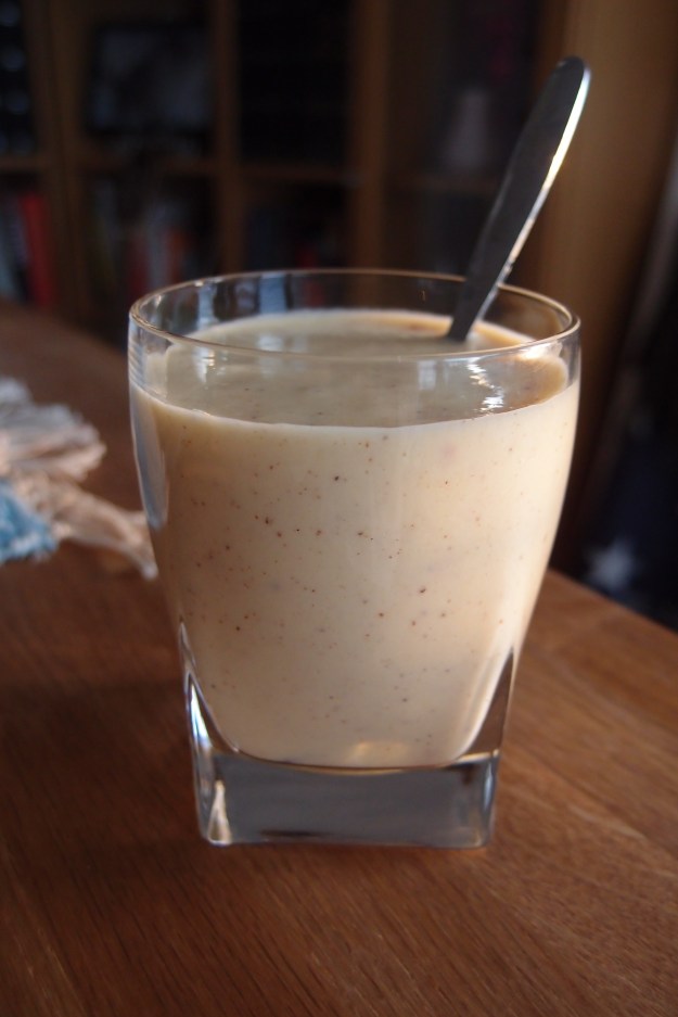 Jag hade ingen fetaost hemma så dagens variant blev toppad med parmesan och dessutom blomkål, selleri och tomat. Och dressingen blev självklart ingefärsdressing med cashewnötter från kylen. Den här typen av mat mättar inte speciellt länge så mellanmålet blev avokado och matmuffins från frysen.