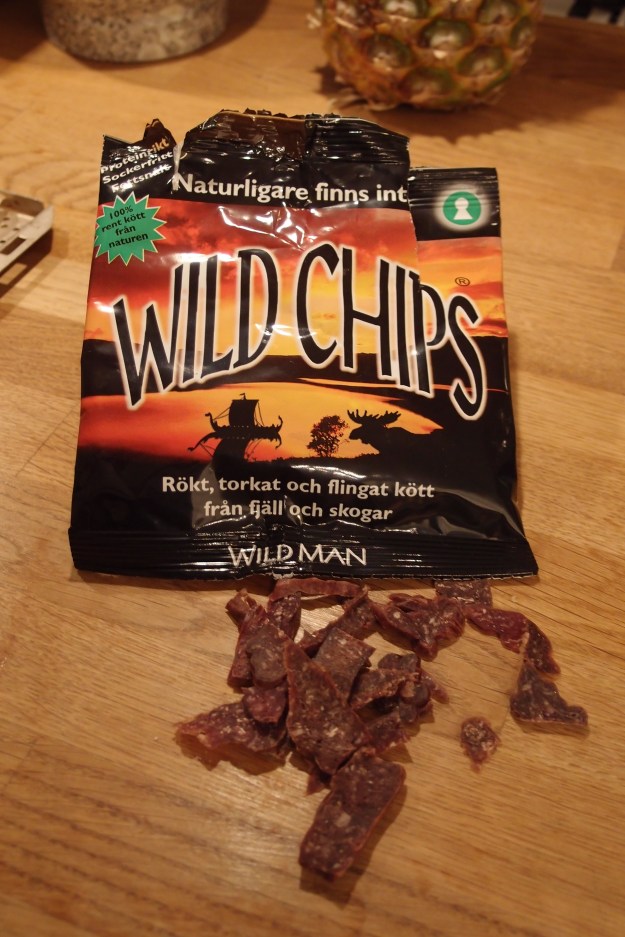 Jag blev så nyfiken på hur det smakar så den här påsen fick komma med hem från affären för hela 30 kr! Det här något för kött- och viltälskaren, men det motsvarar inte vad jag vill ha som snacks..urk. De är sega i konsistensen och tyvärr alldeles för salta. Jag håller mig nog till de vanliga, hederliga potatischipsen ändå… Nej förlåt – jag menar morotsstavarna förstås 🙂