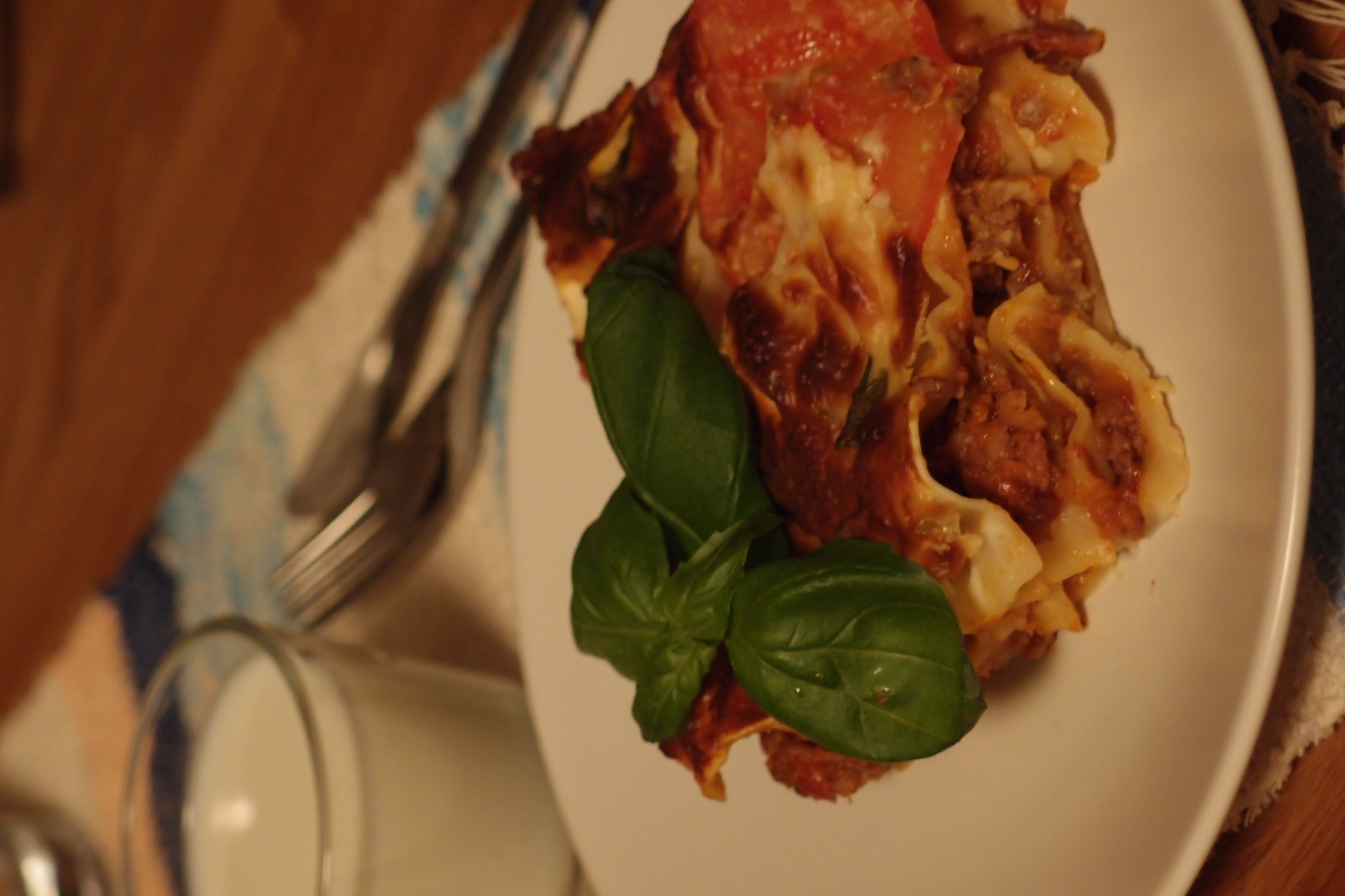 Igår var jag hemma och myste med Tarzan (vår nya kattunge) hela dagen och passade då på att göra lasagne. Den gamla favoriten! Ofta pappas önskemål när jag är hemma på Åland och kockar. Rackarns vad gott det är alltså, speciellt dagen efter! 🙂
