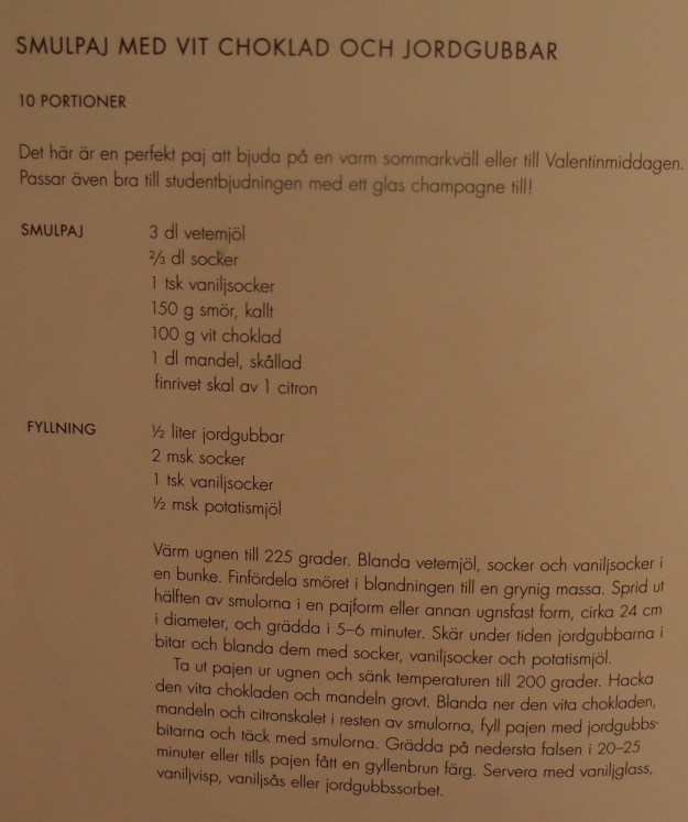 Supergod paj som jag har bakat i åratal. Oftast med hallon istället för jordgubbar och inte alltid med mandel i degen. Citronskal kan bytas mot lime- eller apelsinskal. Kanske något för alla hjärtans dag?