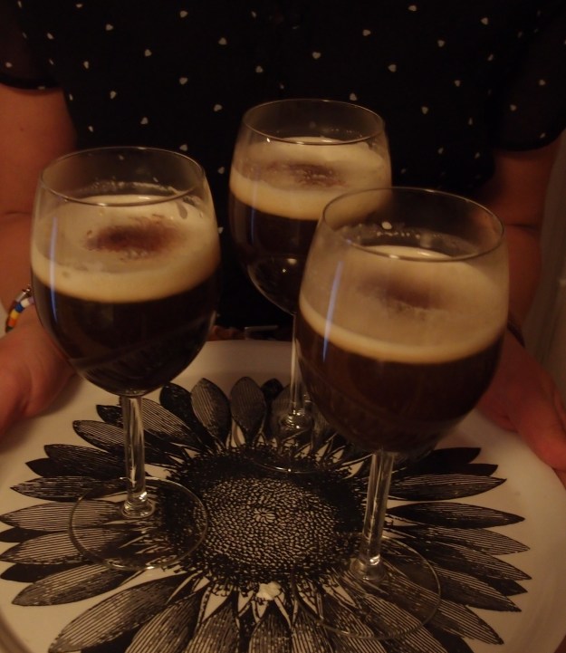 Hos oss just nu. J.L är på besök och det bjuds på Irish Coffee! 🙂