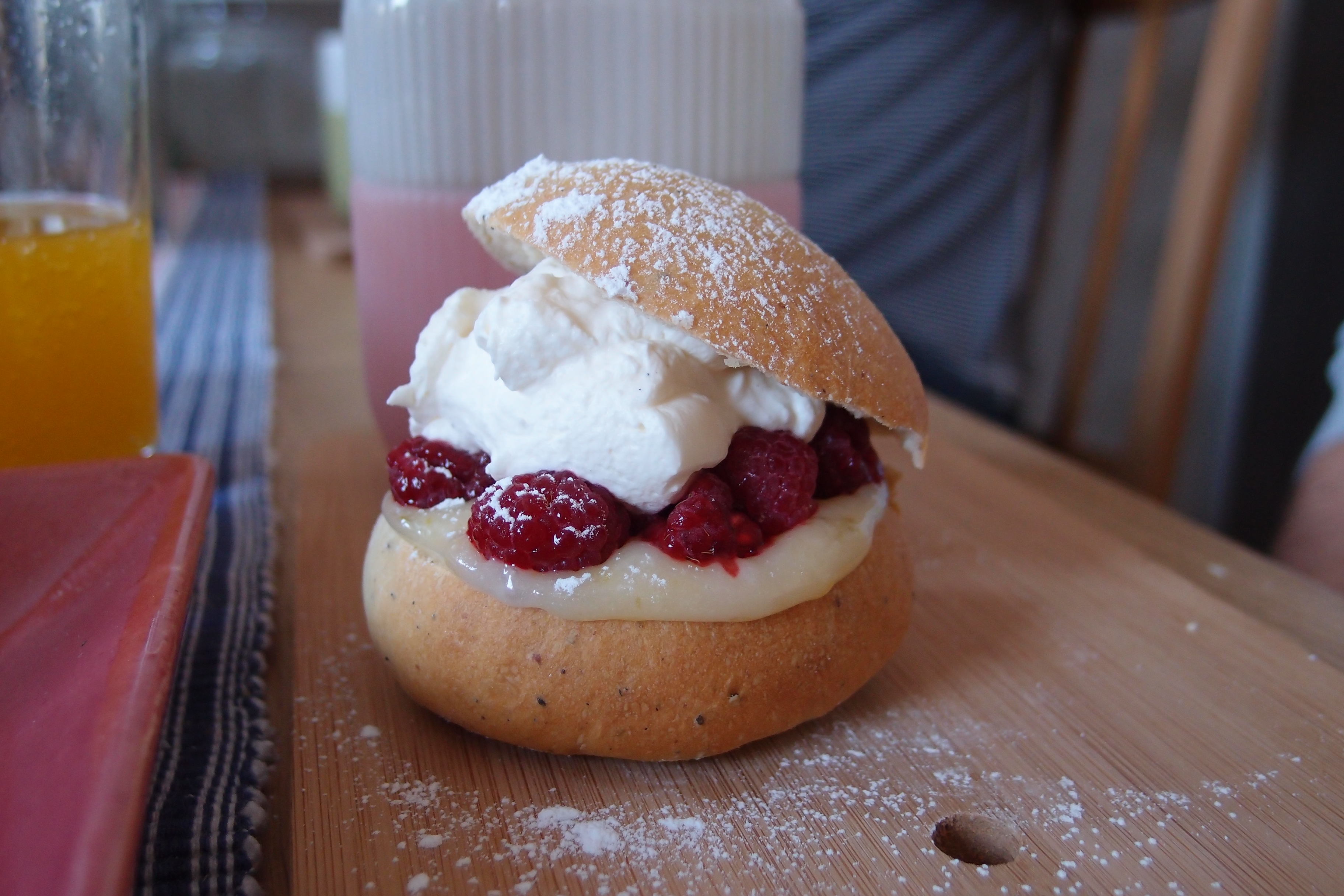 Lemon curd och hallon var inte så dumt som fyllning. Men det är ingen riktig semla! Jag föredrar klassikern alla gånger om!