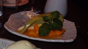 Mangocheesecaken var god och ganska mild i smaken. Kanske inget vi beställer in igen, då provar jag hellre en ny dessert. Det gröna lagret var någon slags mousse med smak av grönt te. Kul med en något annorlunda topping!