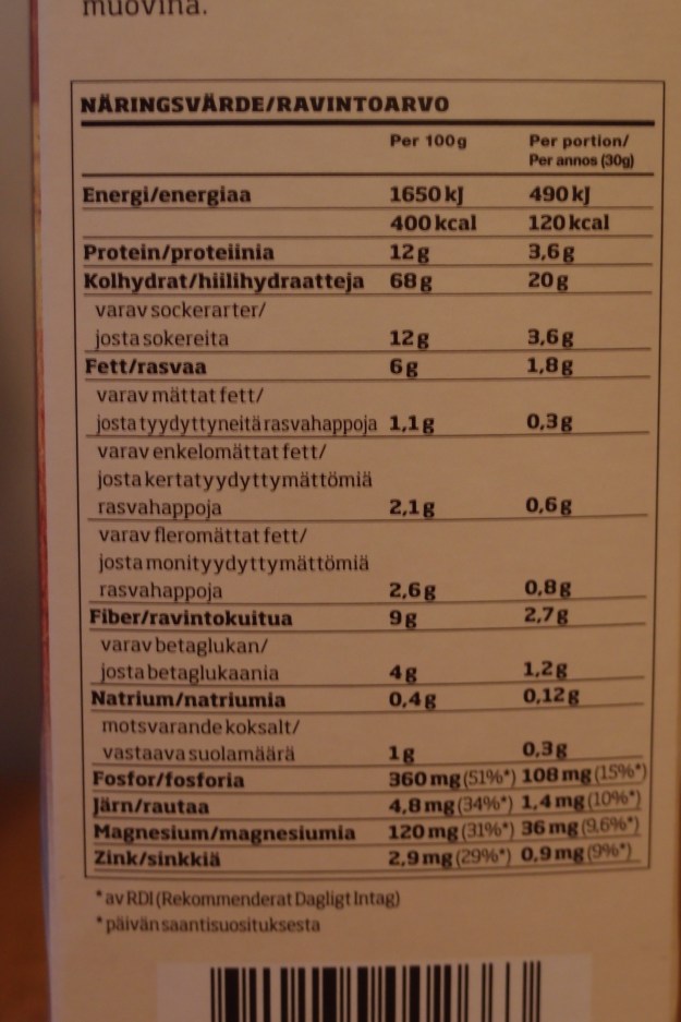Visst innehåller även dessa socker (12g/100g), men ungefär hälften så mycket som de flesta andra flingor på marknaden. Ta All-Bran Regular till exempel, som jag i alla fall associerat som ett något nyttigare alternativ; de innehåller 20g socker per 100g livsmedel. Som en liten jämförelse: Rågfras (5g/100g) och Weetabix (4,4g/100g)