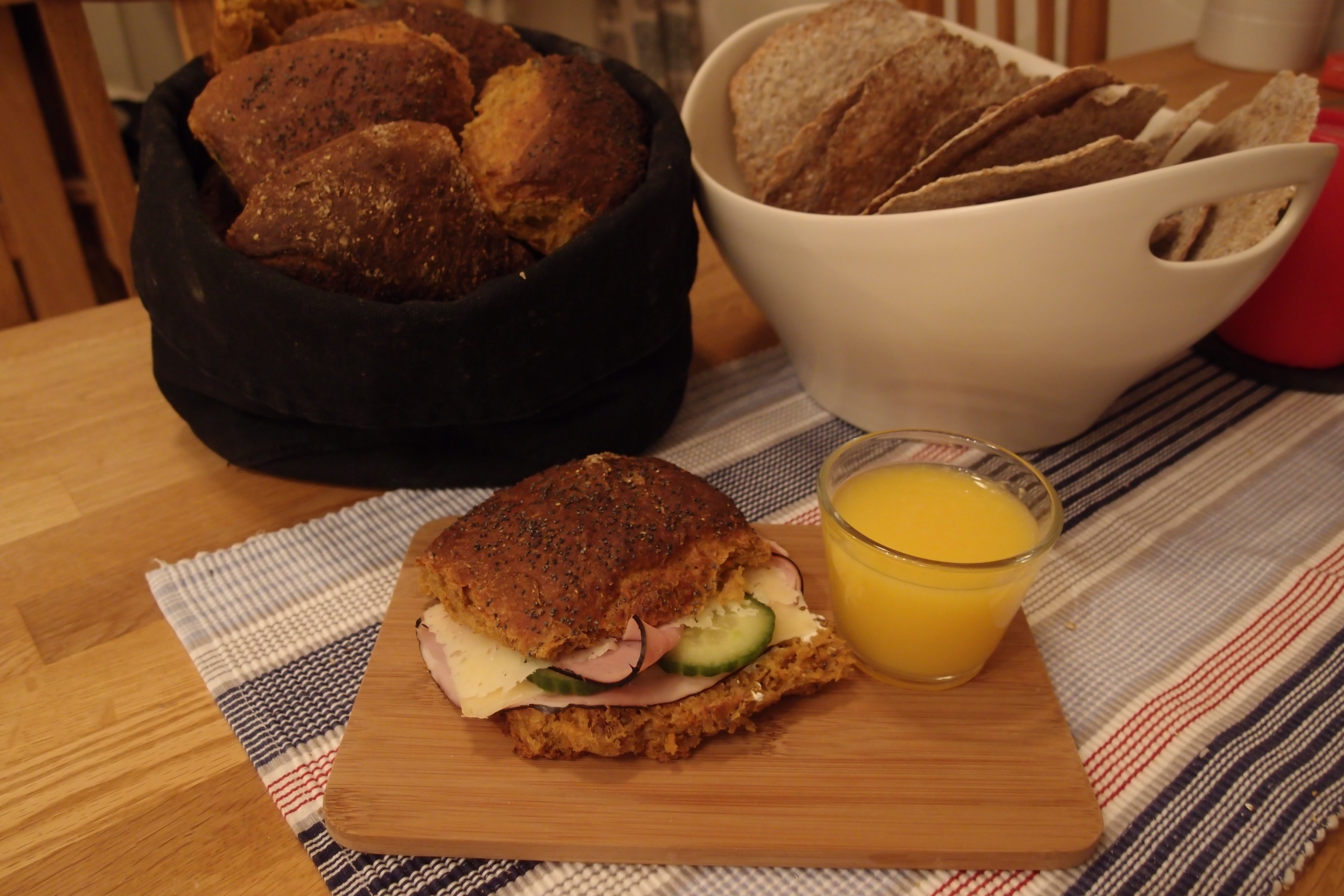 Jag bjöd brorsan på en rykande färsk dubbelmacka, det uppskattades. När jag ändå var i farten bakade jag mitt absoluta favoritknäcket också, receptet har jag lagt upp tidigare. Du hittar det här.