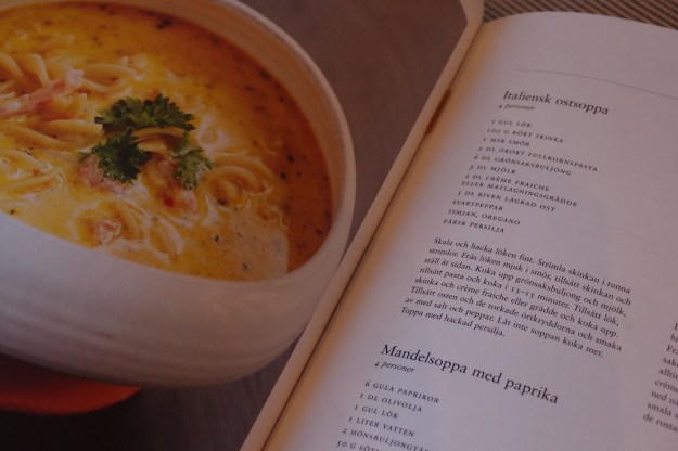 Igår stod italiensk ostsoppa på menyn hos oss. Receptet hittade jag i den här boken;
