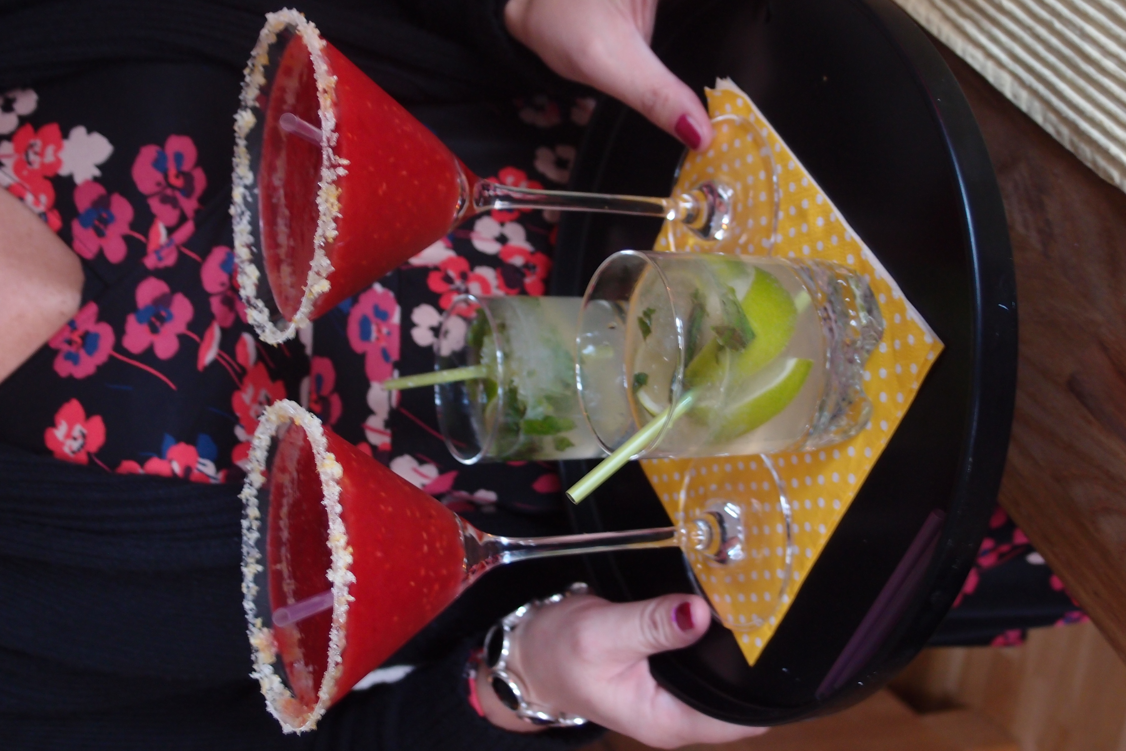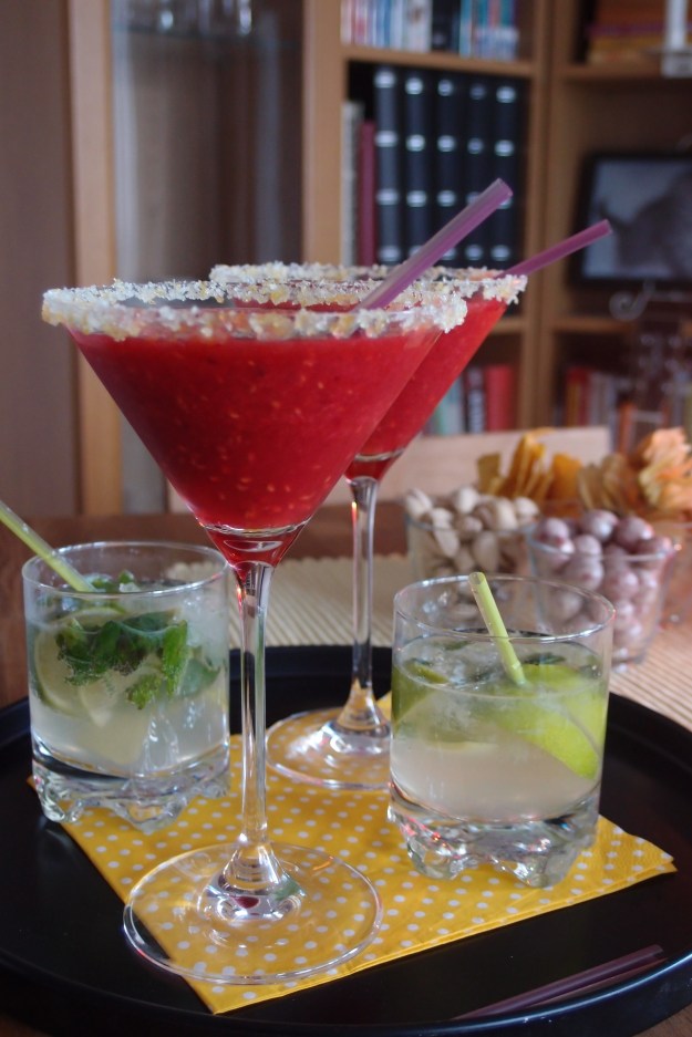I lördags råddade jag ihop två smarriga favoritdrinkar, nämligen daiquri och mojito. Eftersom frysta jordgubbar kan vara så smaklösa och tråkiga valde jag att göra en hallondaiquri. Mojito har länge varit en given kompis när det vankas fest, jag älskar nämligen både lime och mynta. Men den blir snäppet vassare med inslag av en annan favoritkrydda så det fick bli en ingefärsmojito. 🙂 Jag är verkligen ingen bartender så ni som är duktiga på området får väl titta bort helt enkelt, men smarrigt värre blev det!