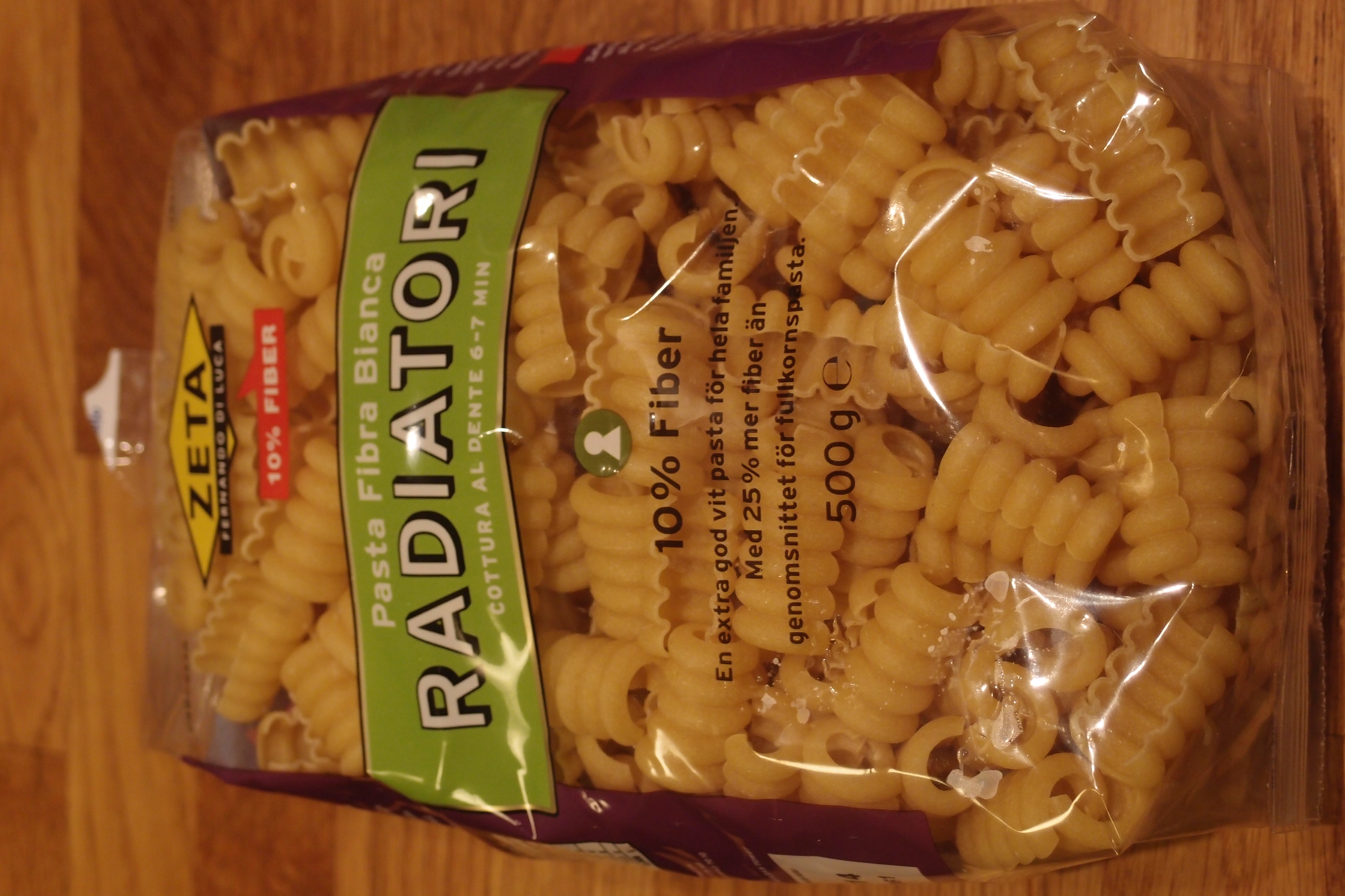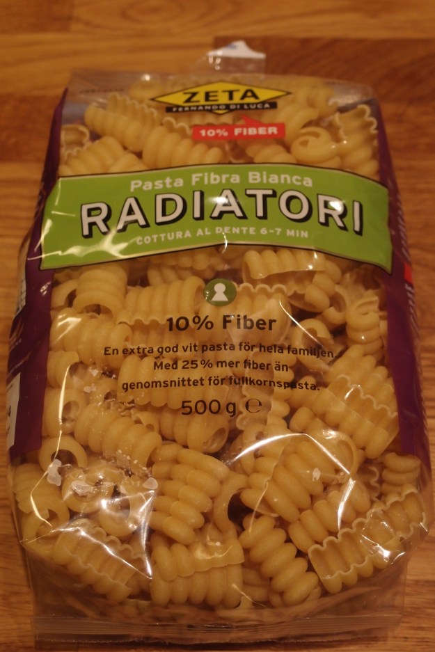 Olika sorter av pasta lämpar sig för olika smaksättningar och såser. Och det finns nog en baktanke med val av pastasort även till det här receptet men mitt guppiminne svek mig i affären så jag köpte med mig radiatori…men det fungerade bra det med.