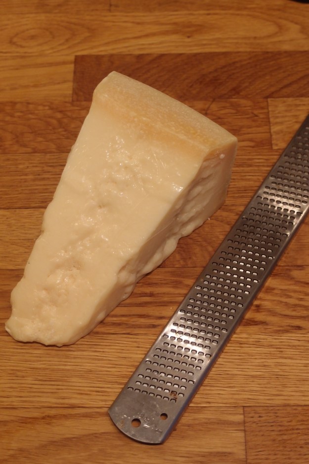 Mycket parmesan ska det vara! Det här är föresten en riktig favorit i köket; Microplanes rivjärn. Superbra, skulle inte klara mig utan detta! Inte bara till fint riven ost utan perfekt när man ska riva citrusskal. Kostar ca 200 kr i köksaffärer, billigare på nätet.