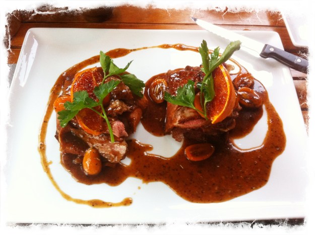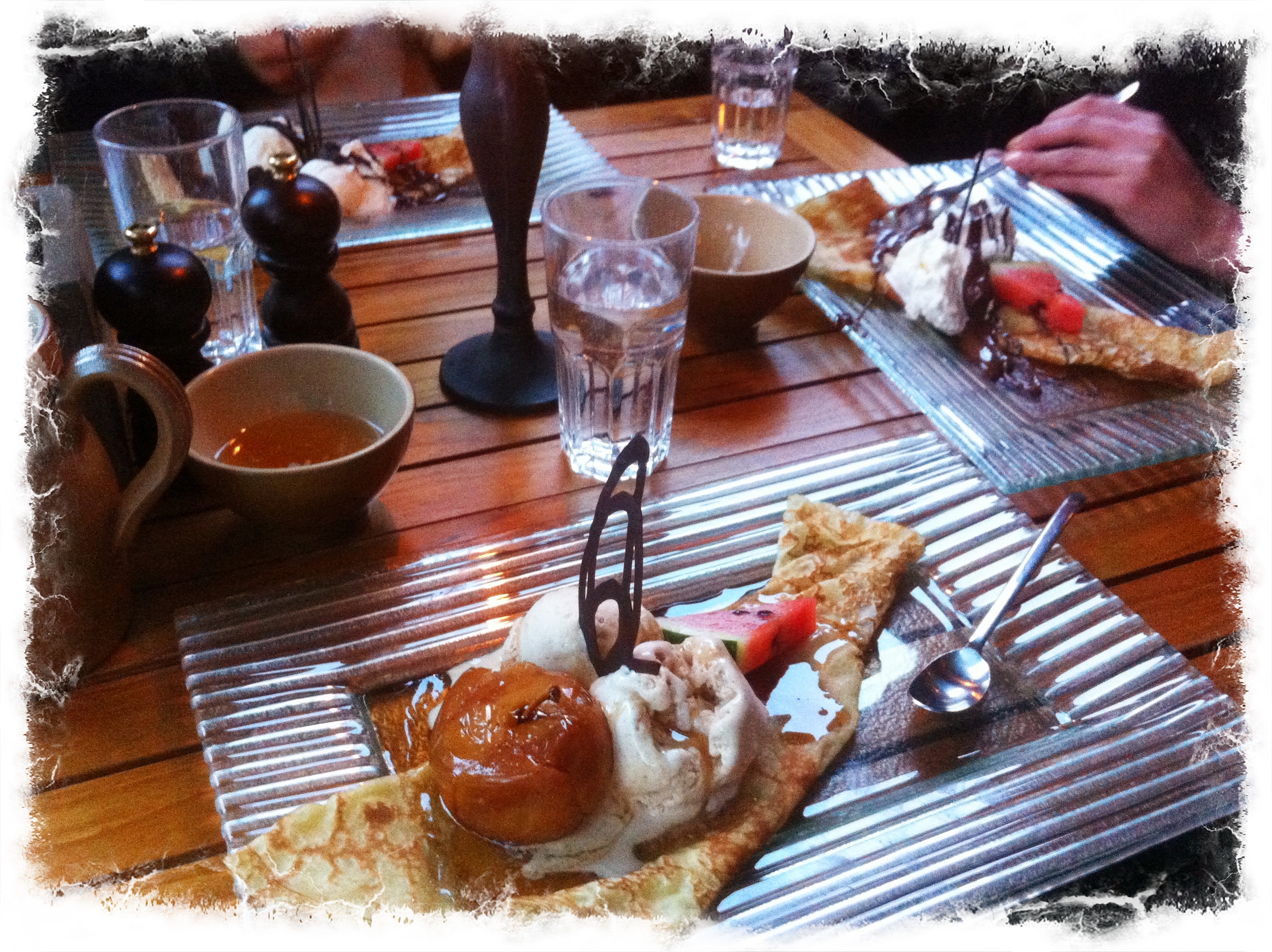 I vanlig ordning var sötsakerna lite av en besvikelse (varför är det alltid så?); Rabarberkompott med italiensk maräng (klart bäst, syrlig och söt), Chokladnemesis * med karamelliserade nötter och mörk romtryffel (saftig och krämig men för spritstark), Shortbread med vaniljbavaroise * (chokladkexet smakade köpt, bavaroisen kom inte till sin rätt där), och Liten frukttartelett (smakade inte mycket men däremot gammalt). Chokladnemesis; var en mini cupcake toppad med tryffel. Bavaroise är som en hård mousse, konsistensen är nästan som en pannacotta.