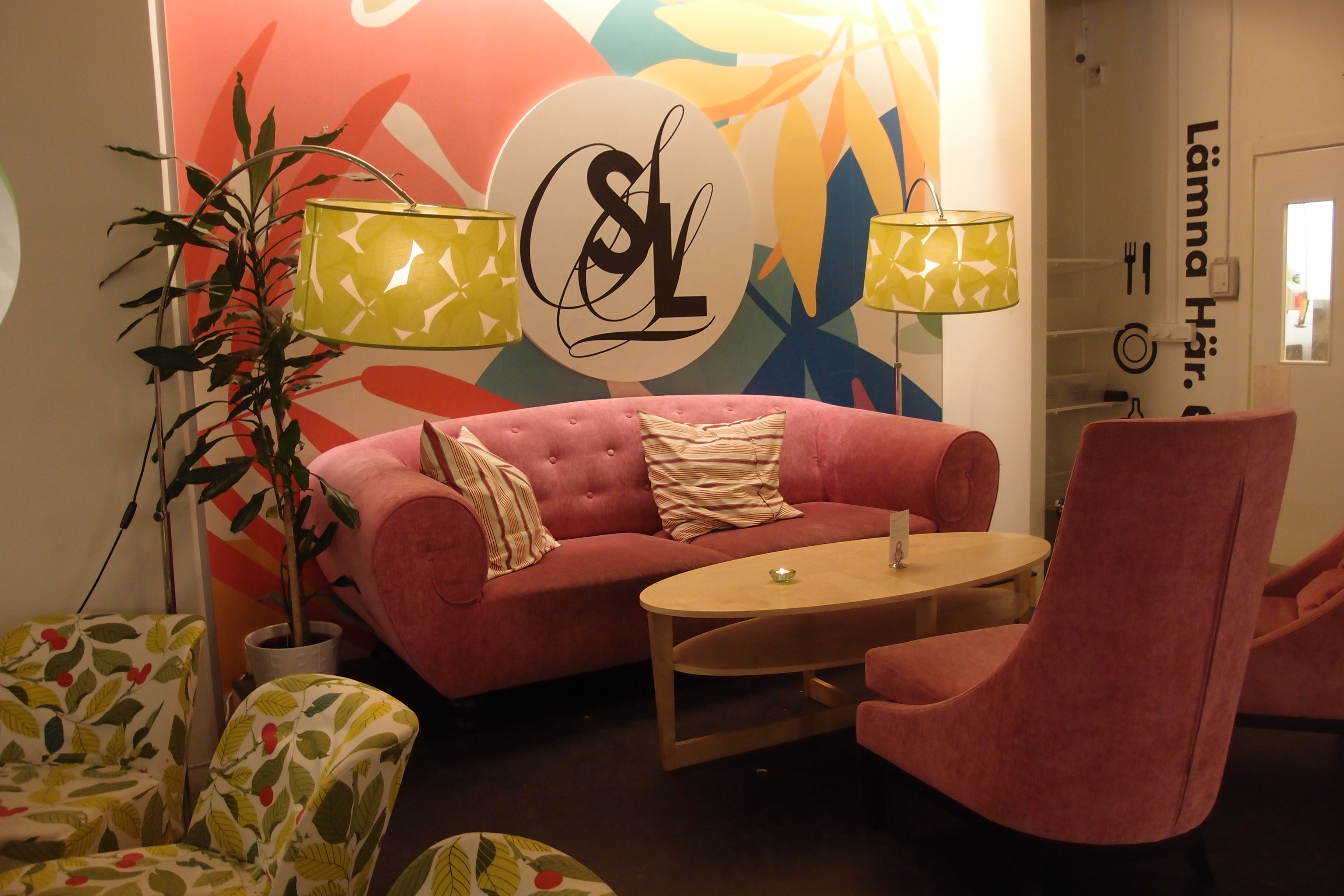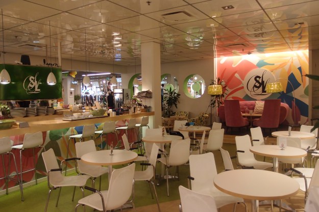 För att vara inne i en galleria måste jag säga att de lyckats göra inredningen mysig och lättsamt positiv med alla våriga pasteller.