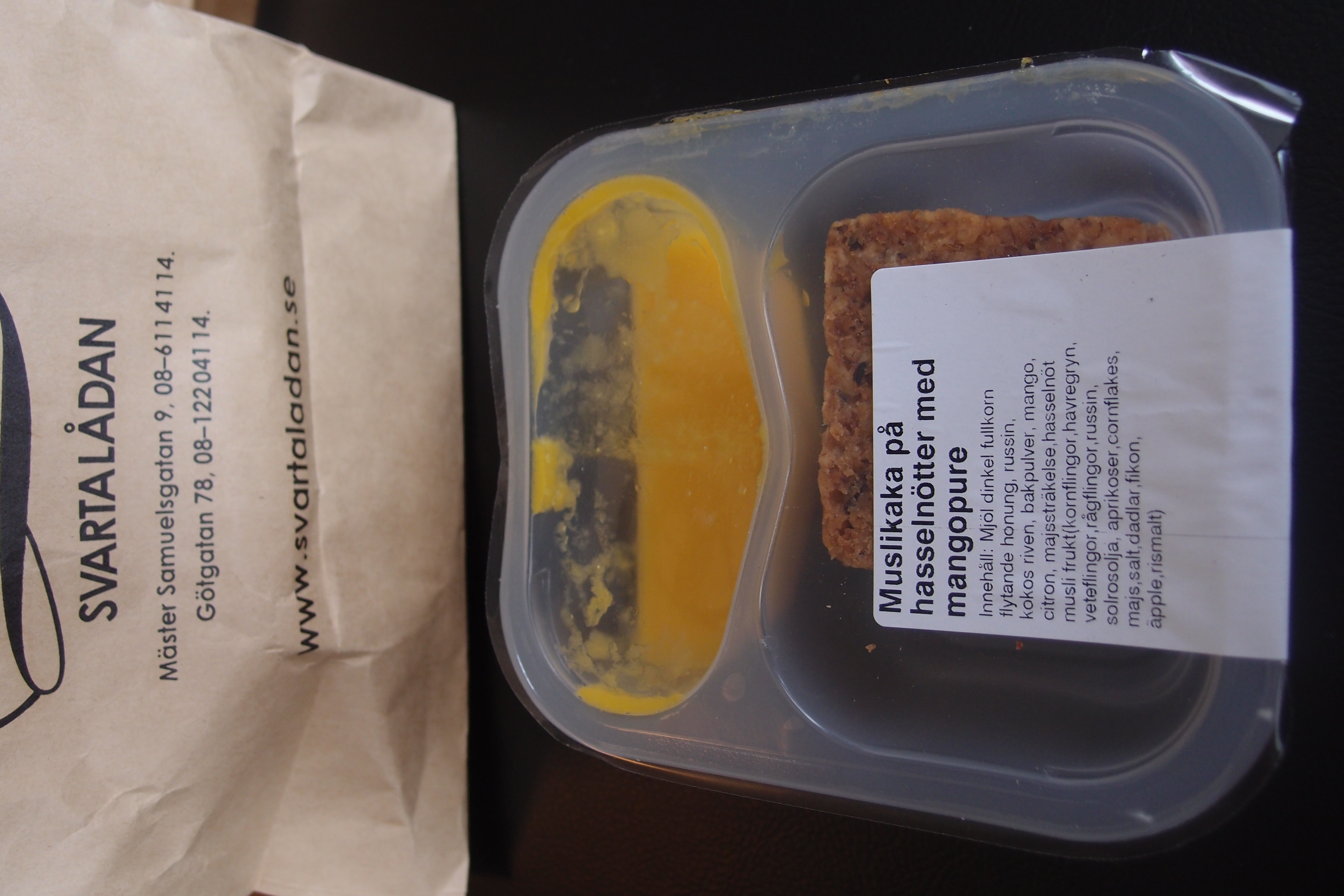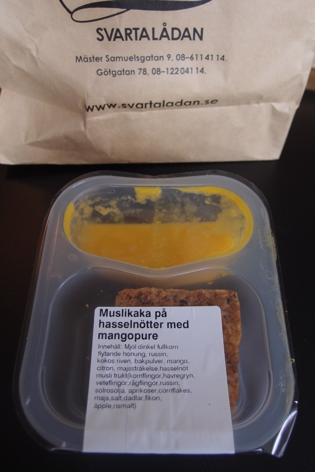 Mangosåsen var rätt sur (?) den också men den friska smaken gav ett lyft till den ganska kompakta och milt smakande müslikakan. Nu har jag fått inspiration nog att labba ihop liknande mellanmål till veckan som kommer. Det gillas!