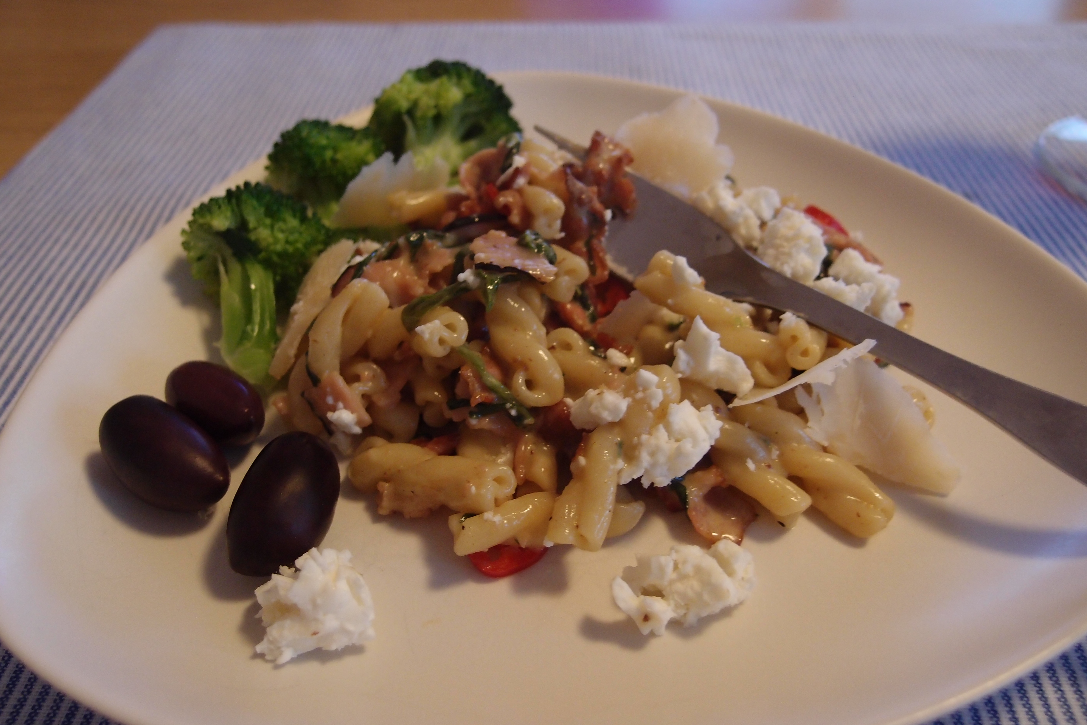 Kokos och jag myste till finalen av Let’s Dance i fredags (medan regnet fortsatte ööööösa ner utanför) och jag passade på att lyxa till det med solo middag i form av carbonara deluxe. För att få inspiration bläddrade jag runt i Marcus Pasta och snappade upp en idé här och en annan där och resultatet blev så gott att jag kunde ätit upp alltihopa. Det bästa var att jag slapp handla! 🙂