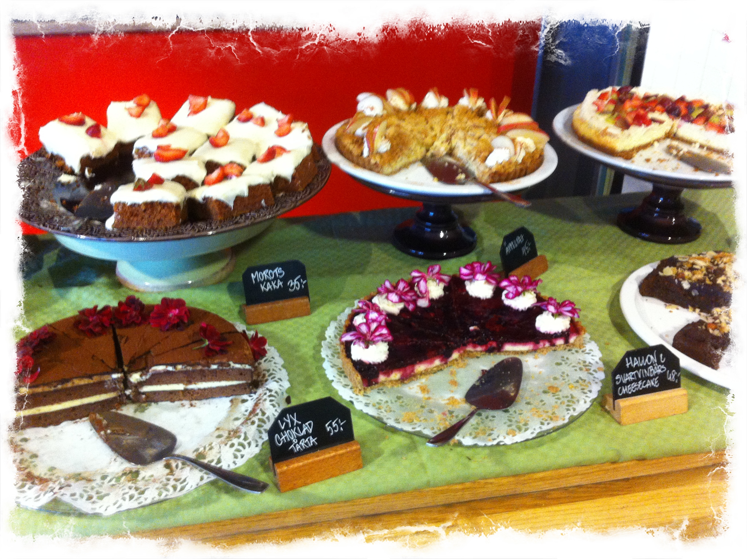 Det här var dock lite för smaklöst för att imponera. Kanske valde vi inte ut guldkornen? Det fanns ju mycket vi inte provade som äppelpaj, vitchokladcheesecake, morotskaka, banankaka, kladdkaka osv. (Fortfarande sugen på att ge dem en chans).