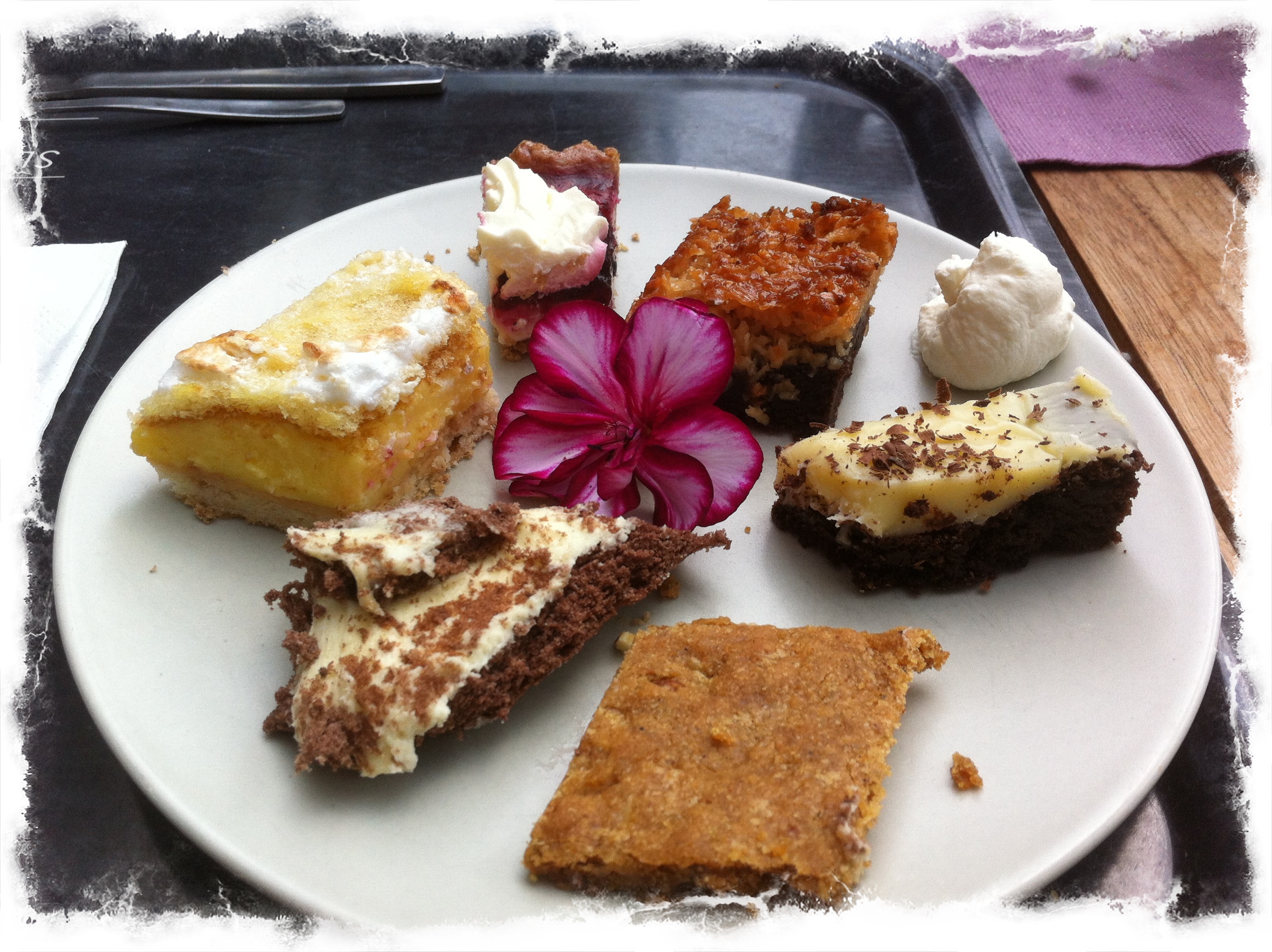 Det blev en citron & marängpaj, drömtårta, kardemumma & mandelsnitt, hallon & svartvinbärs cheesecake, choklad & kokostosca och vitchokladtryffel.