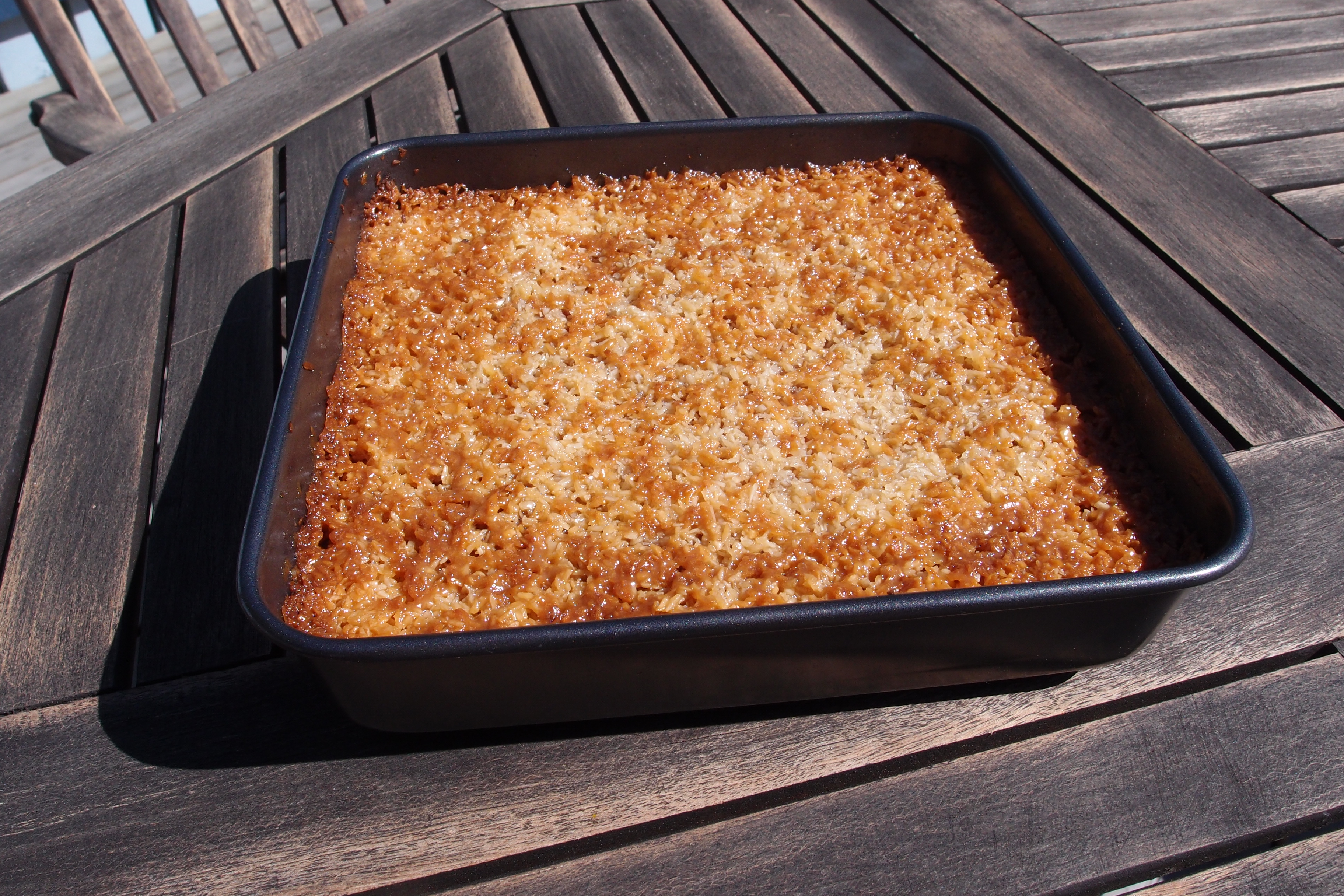 Här svalnar min kaka på terrassen. Låt alltid kakan svalna i formen (ev täckt) så behåller den sin saftighet bäst.