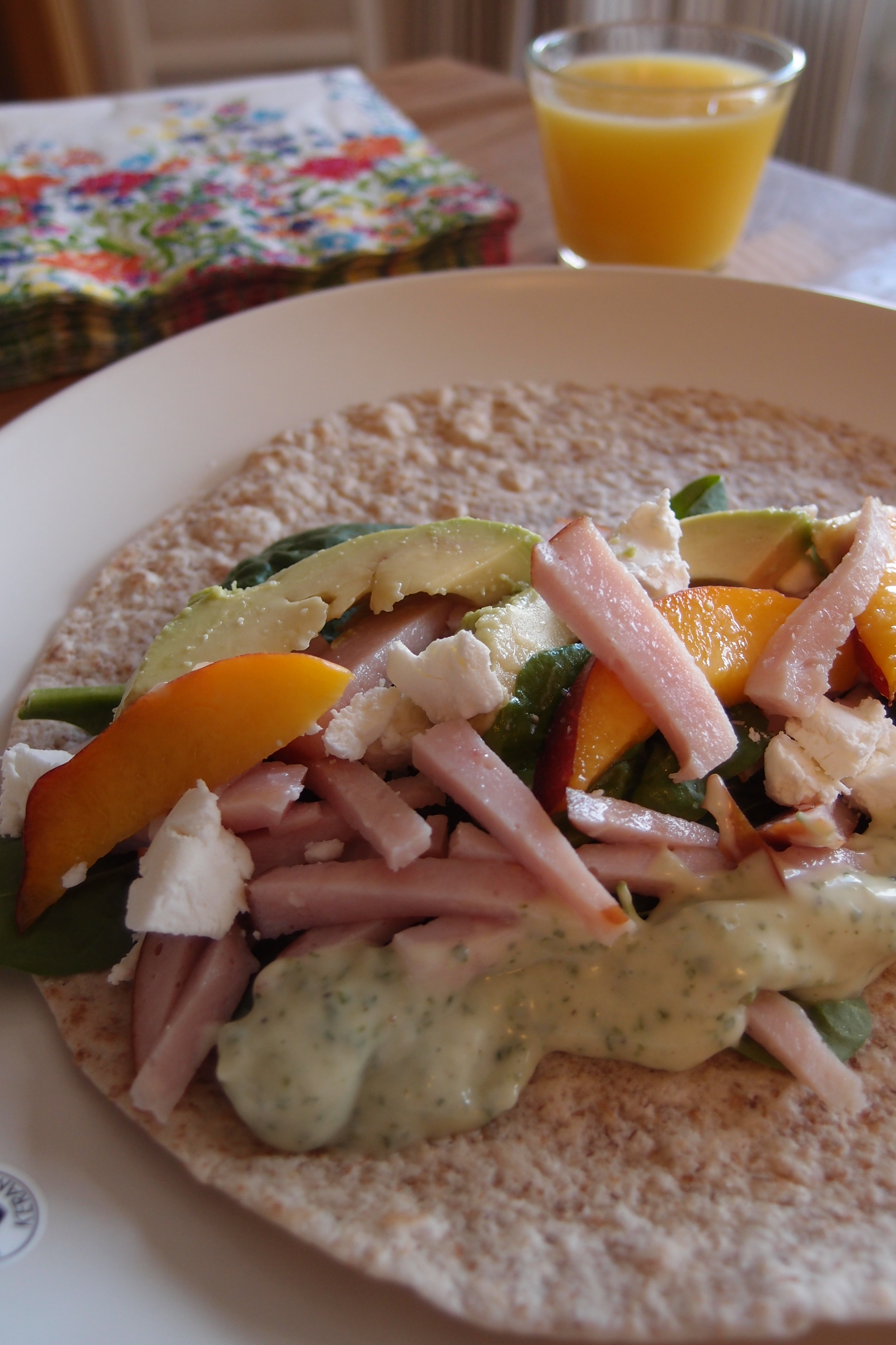 Middag på sekunder är lätt fixat när man precis handlat. Den här smarriga fullkornswrapen tog kanske 1 minut att lägga ihop. Den innehåller bladspenat, strimlad rökt kalkon, nektarin, avokado, getost, en hemlagad örtmajonäs och flingsalt. Yammey! Två dagar i rad har den åkt ner i kistan, det ser ut att bli en tredje. Tidsbrist!