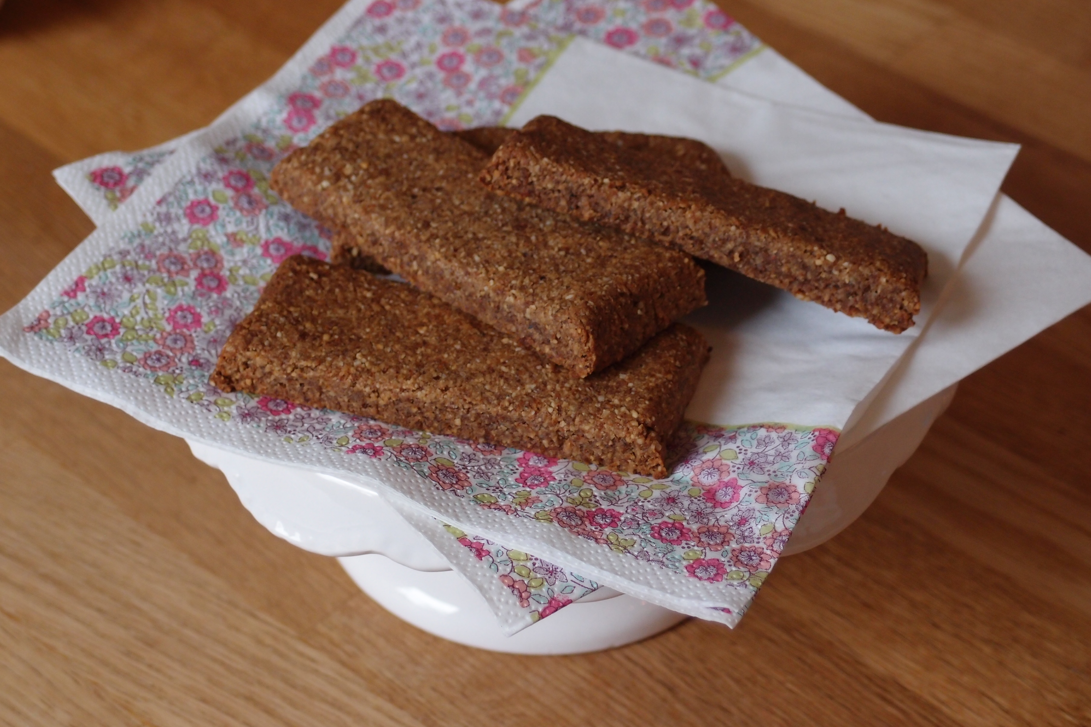 Det här blir en liten sats. Jag fick ut 5 bars. Perfekt om du känner dig osäker på om du kommer gilla dem eller inte. Stört goda ogräddade också, rulla dem då till små bollar i exempelvis kokos, sesam, vallmofrön eller mixade nötter.
