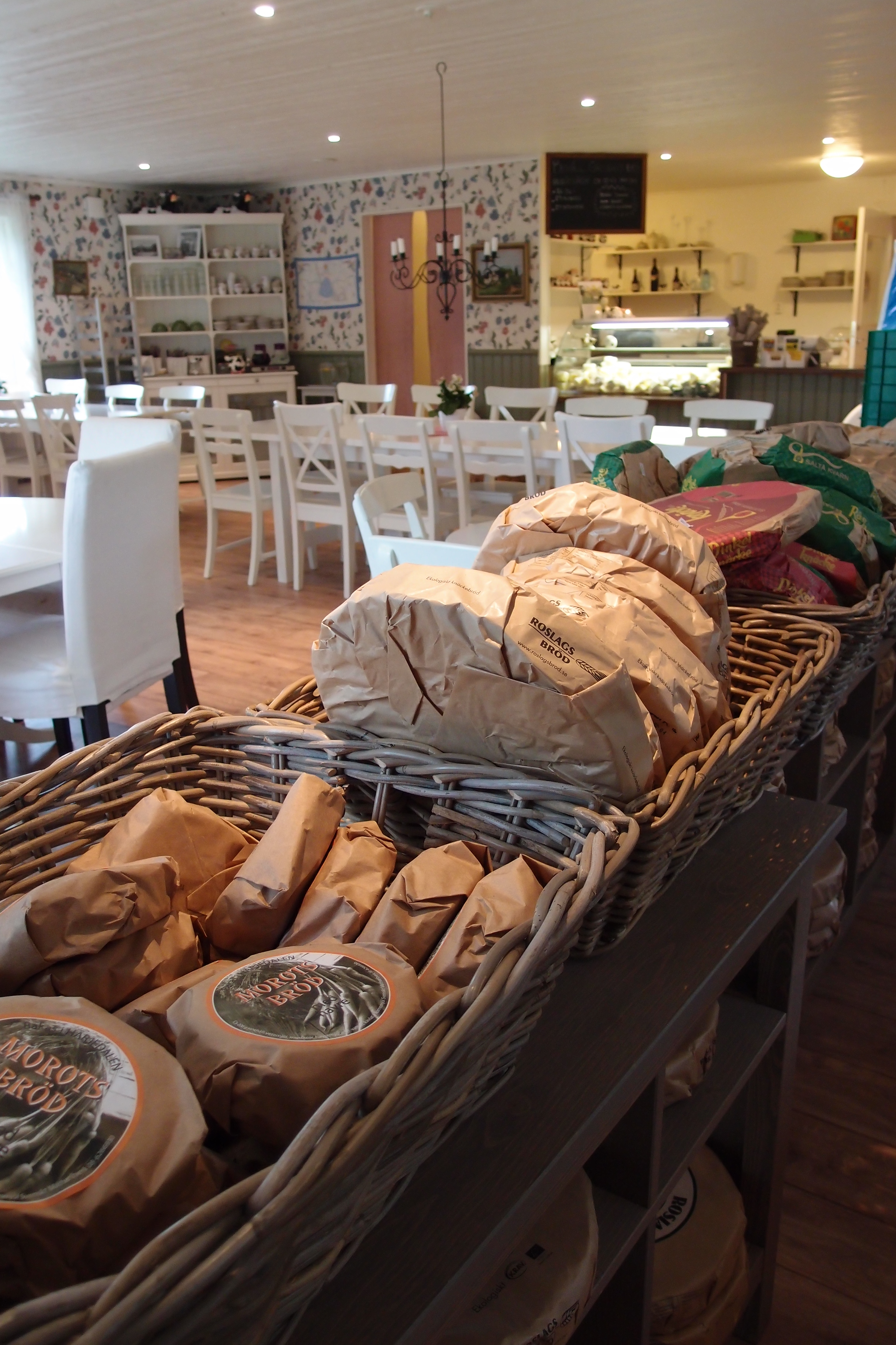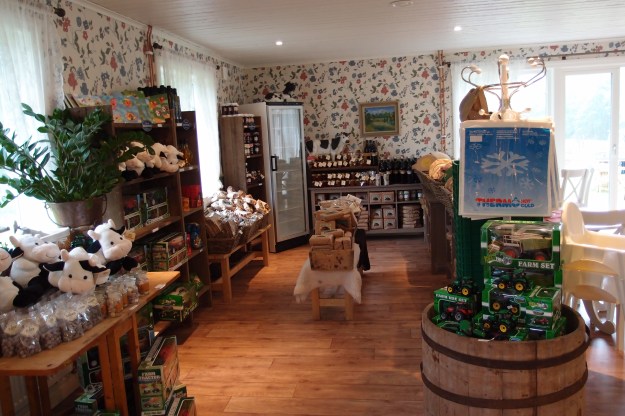 I gårdsbutiken hittade man bl.a. knäckebröd, saft och sylt. Och självklart egna ostar!