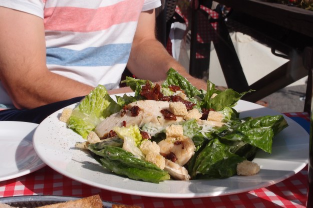 Egentligen är det lite korkat att välja just Caesarsallad när man betalar mycket pengar för mycket romansallad. Men så är det ju gott också…