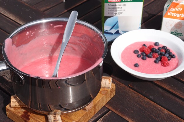 Jag har fått dille på vispgröt. Så galet gott, även på röda vinbär  (i stället för lingon) och grahamsgryn (i stället för mannagryn, men öka på mängden lite).