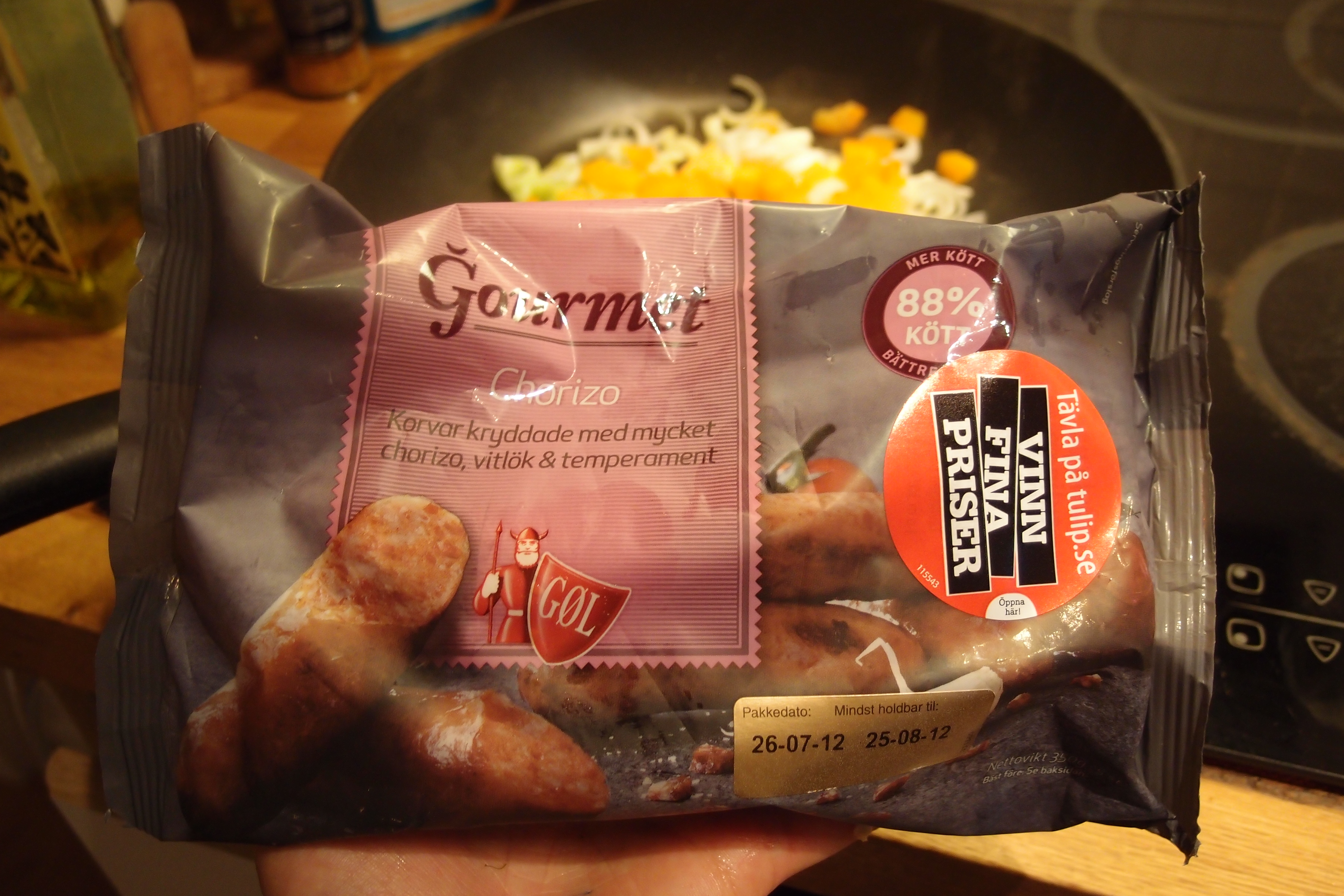 Jag hittade en ny chorizo i butiken med hög kötthalt. Det gillas!