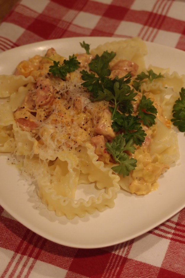 Snabblagad vardagsmat! Pasta med chorizo och parmesan.