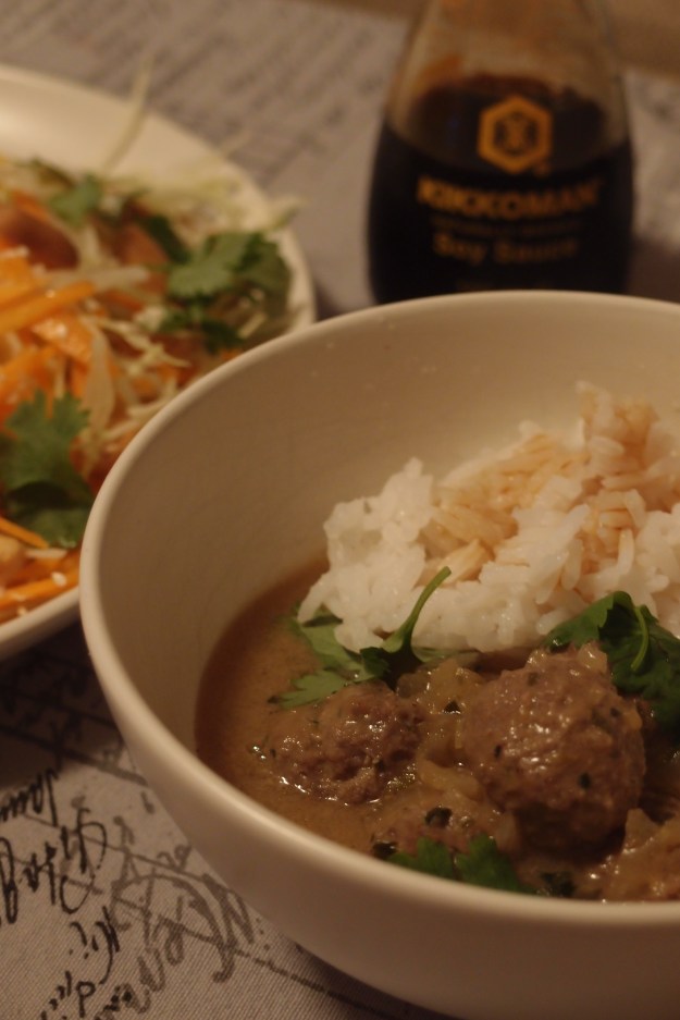 Som sagt. Sämst på thaimat. Här försökte jag göra thaiköttbullar i god sås men det blev goda och starka köttbullar i slemmig och misslyckad sås som dessutom fick en förskräckligt tråkig färg. Inget recept jag vill dela med mig av direkt. (Synd bara att de blev min middag flera dagar framöver…).