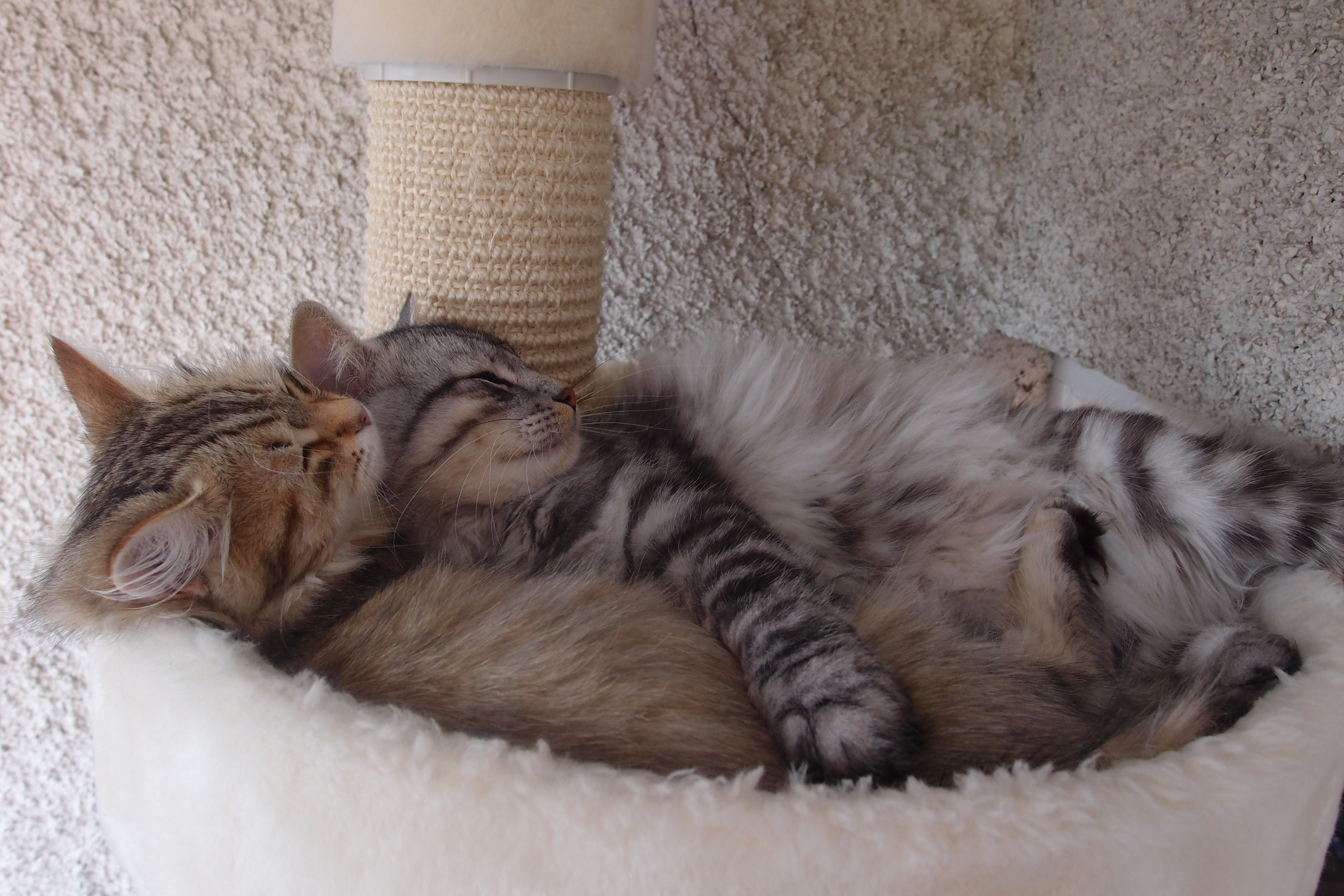 Här älskar Kokos och Skrållan att gosa tillsammans. Högst uppe i ställningen som vi har på balkongen (den är inglasad!)