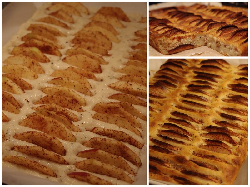 Den här satsen räcker ungefär till 8 större bitar eller 12 mindre. Det går bra att ersätta sockret med samma del stevia, men det ger en bismak. Att servera med äppelmos (och grädde) förstärker den goda fruktsmaken.  Nästa gång åker det ner lite rivet citronskal i smeten, det tror jag ger den rätta kicken.