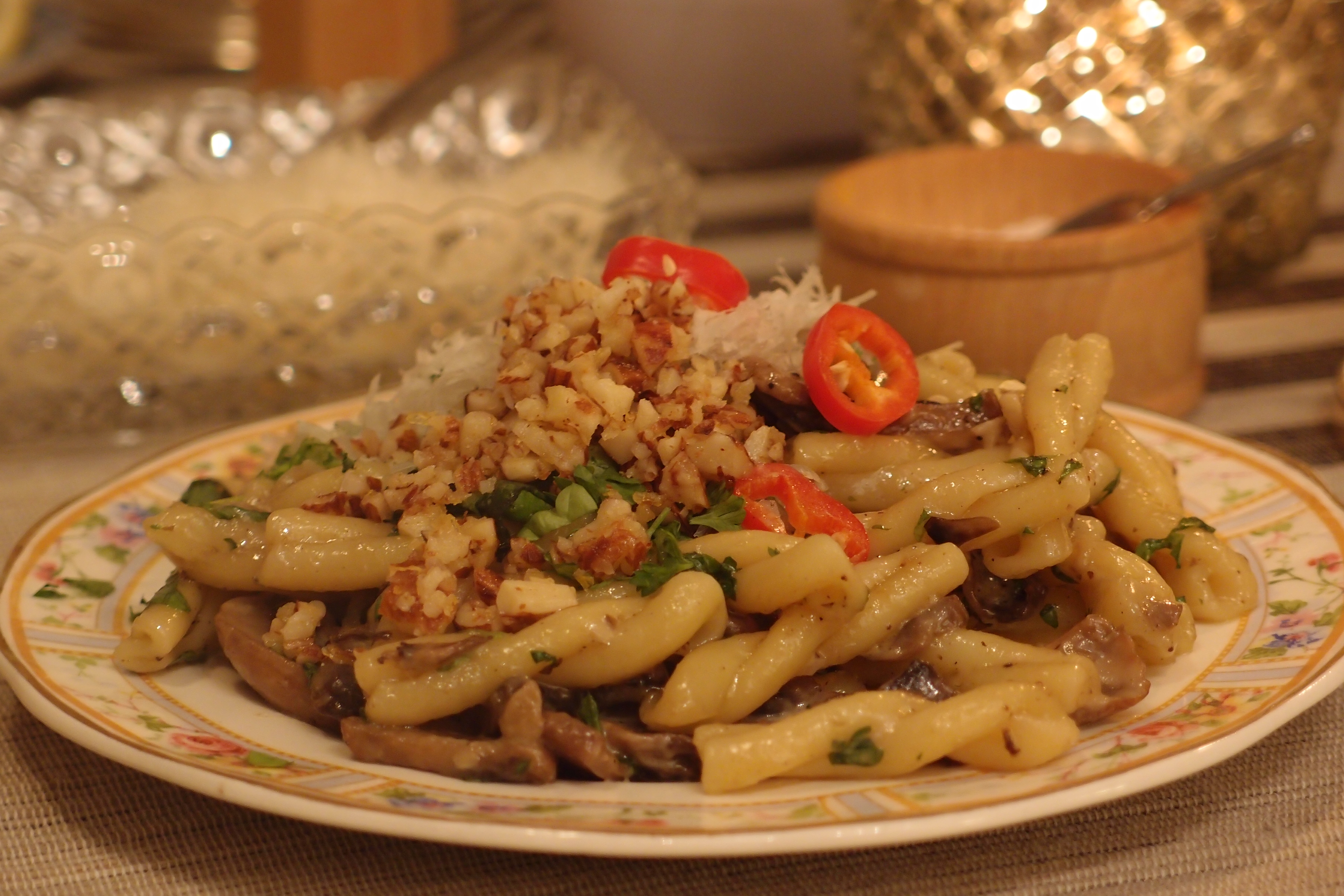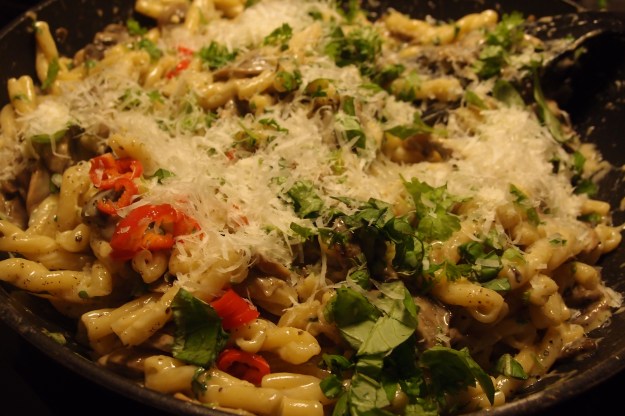 Svamp pasta med tryffelolja & citronmandel pesto
