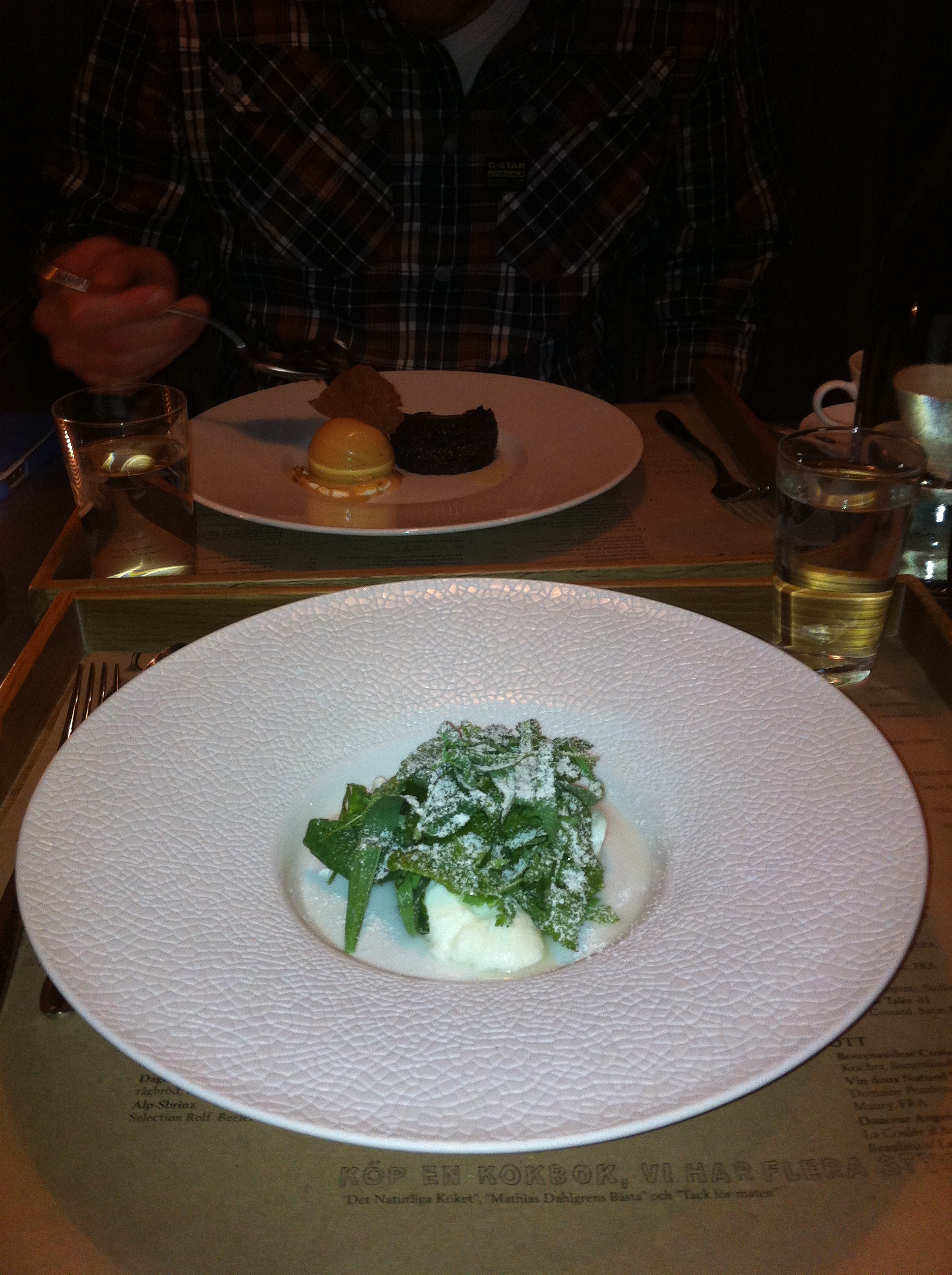 Jag är så mätt när jag skriver detta. Pulsen rusar fram, jag andas som om jag hade tagit en joggingrunda i uppförsbacke. Men det har jag ju inte, nej. Jag har ätit. Fantastisk mat på Mathias Dahlgrens Matbaren i Stockholm. En liten ”avslutningsmiddag” med älskling för våra år i Stockholm. ♥