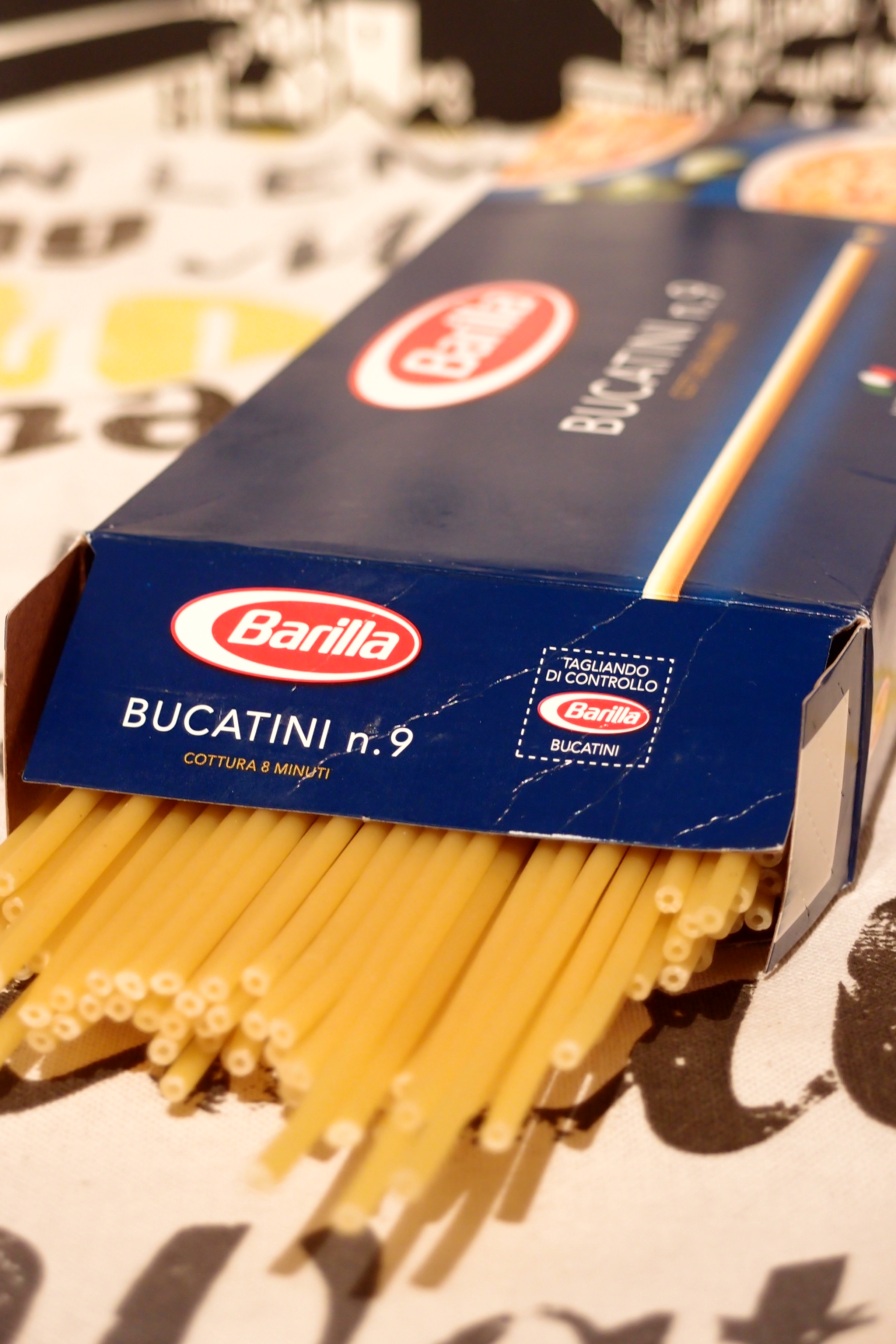 Jag provade en för mig ny pastasort, Barillas Bucatini no. 9 Lite tjockare men samtidigt ihålig. Inte så dum.