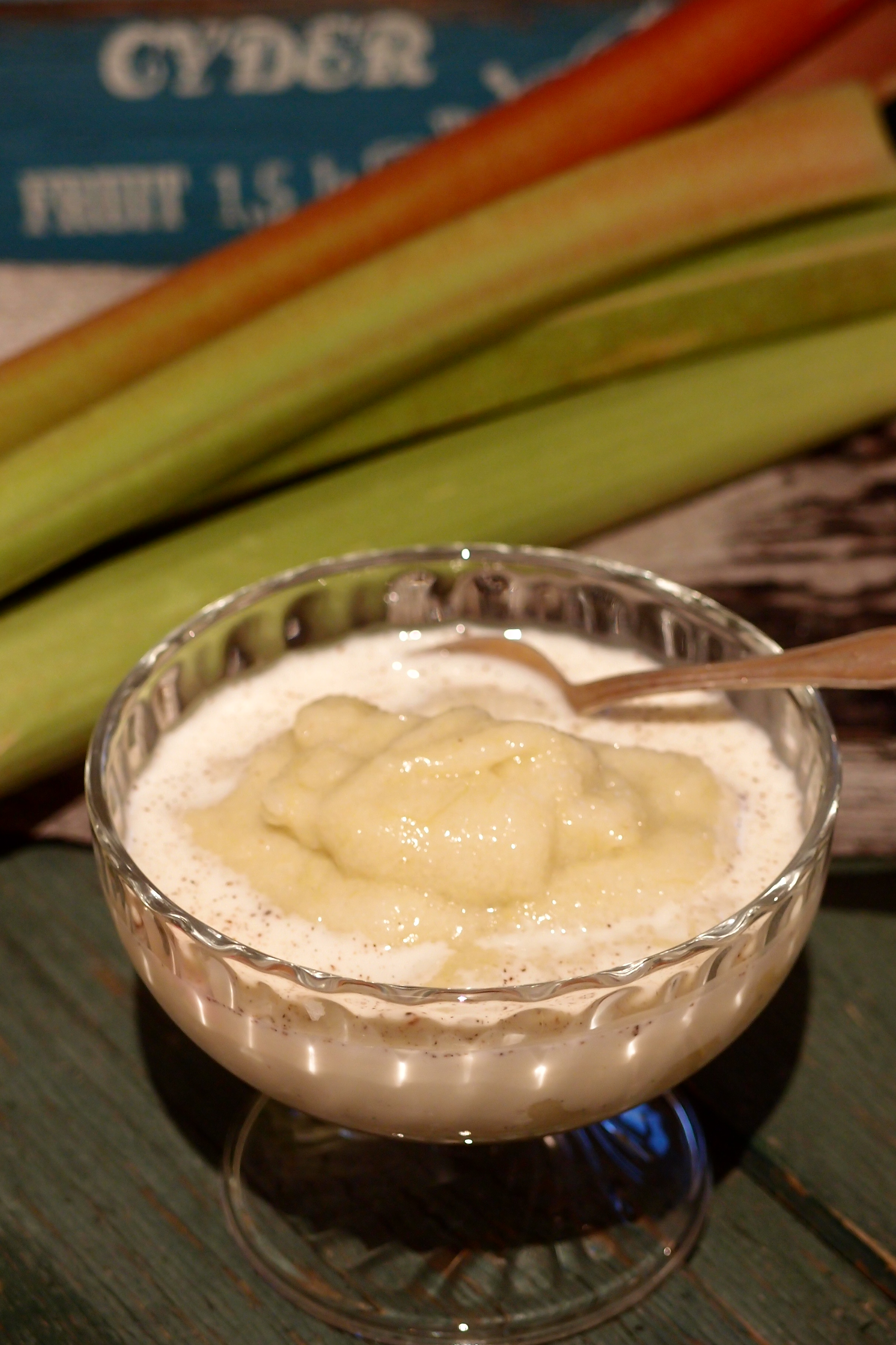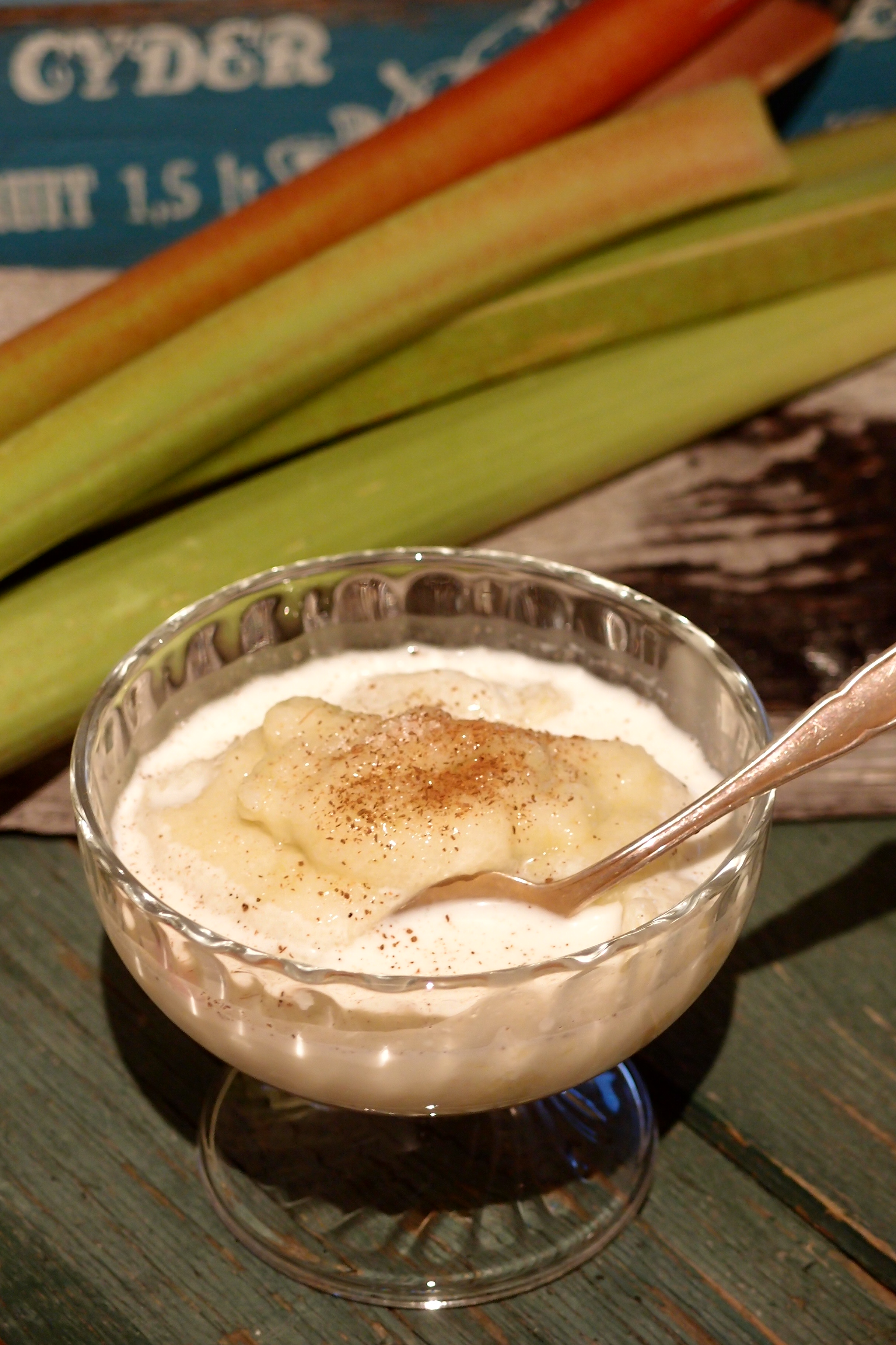 Ljus, syrlig, fluffig och supergod kall med socker och kanel. Gräddmjölk med vanilj eller sojadryck vanilj tycker jag är godast till. Rabarber kräver (tyvärr) socker för att bli gott – hur mycket – det får dina rabarberstjälkar och smaklökar avgöra.
