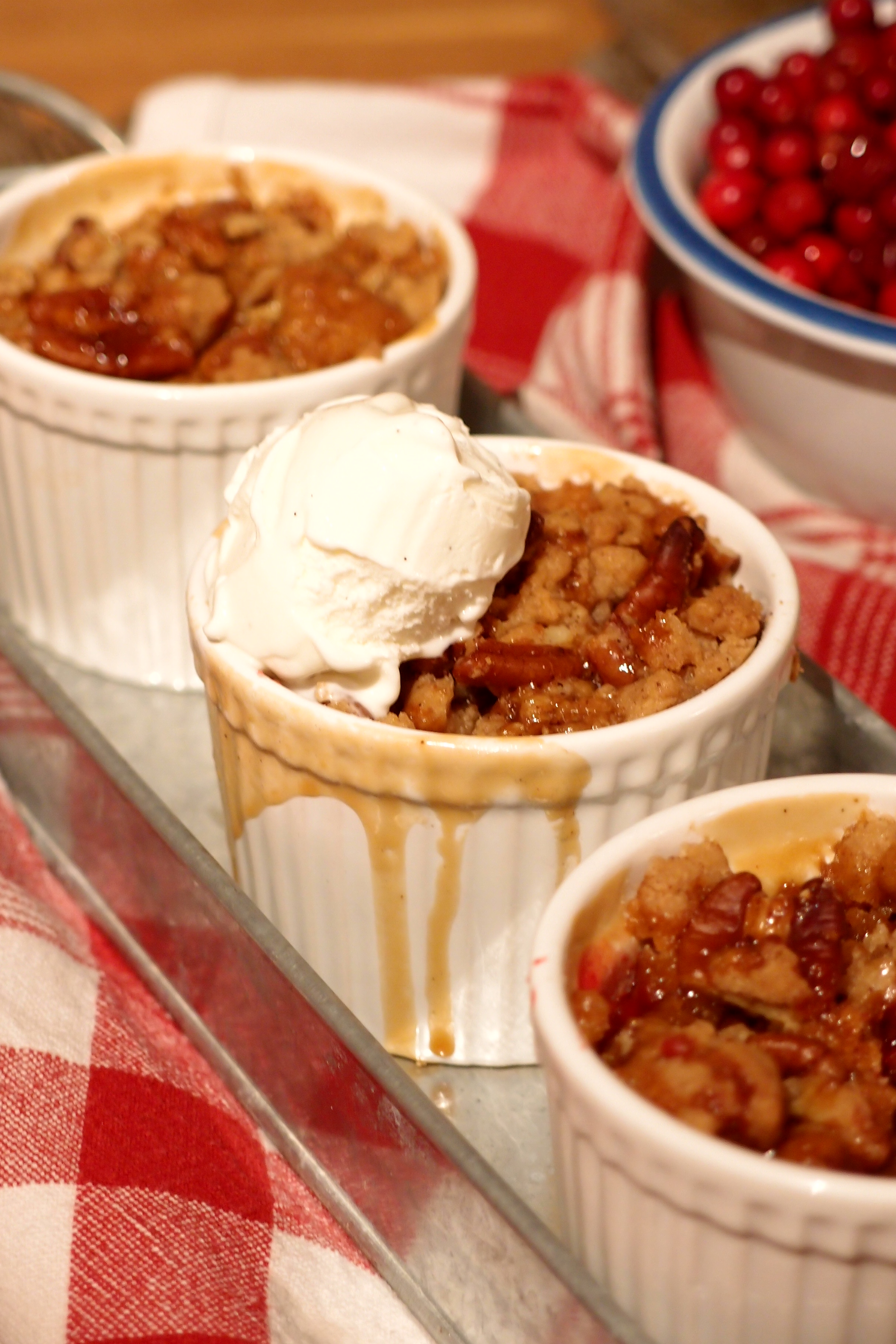 I formarna gömmer sig syrliga lingon i botten som är täckta av en höstig pajdeg med kanel och pekannötter och på toppen lurar en mustig kolasås. Det är extra lyxigt att få sin alldeles egen paj!