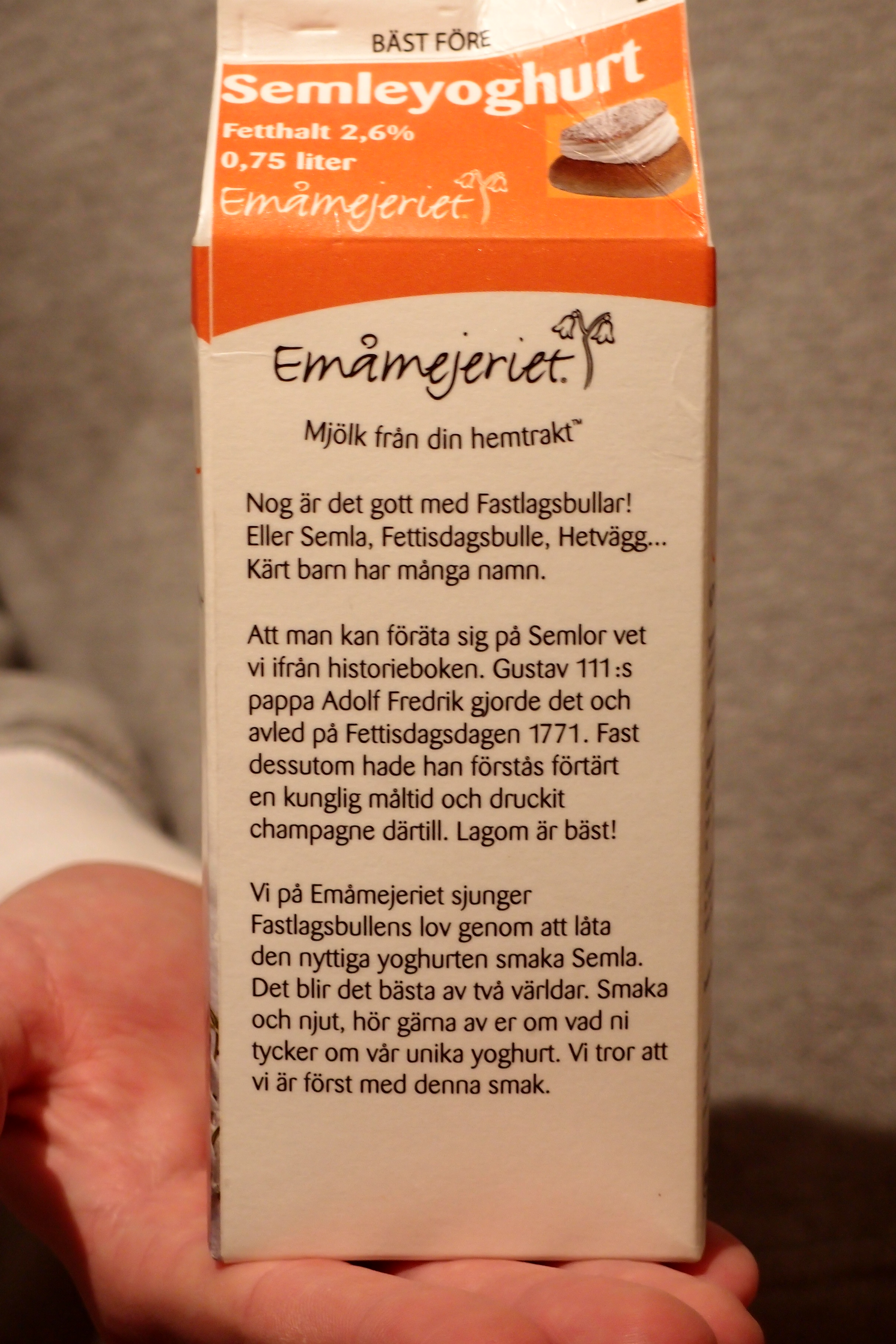 Det är en slät, vit yoghurt med små prickar som smakar semla, dvs kardemumma och bittermandel. Just bittermandel-smaken är ganska påtaglig till en början, så den behöver man vara kompis med för att gilla yoghurten. Jag ger tummen upp! Finns semle fil också, någon som provat? Den kan vara lite knepig att få tag på överallt, jag hittade min tetra på ICA MAXI i Linköping.
