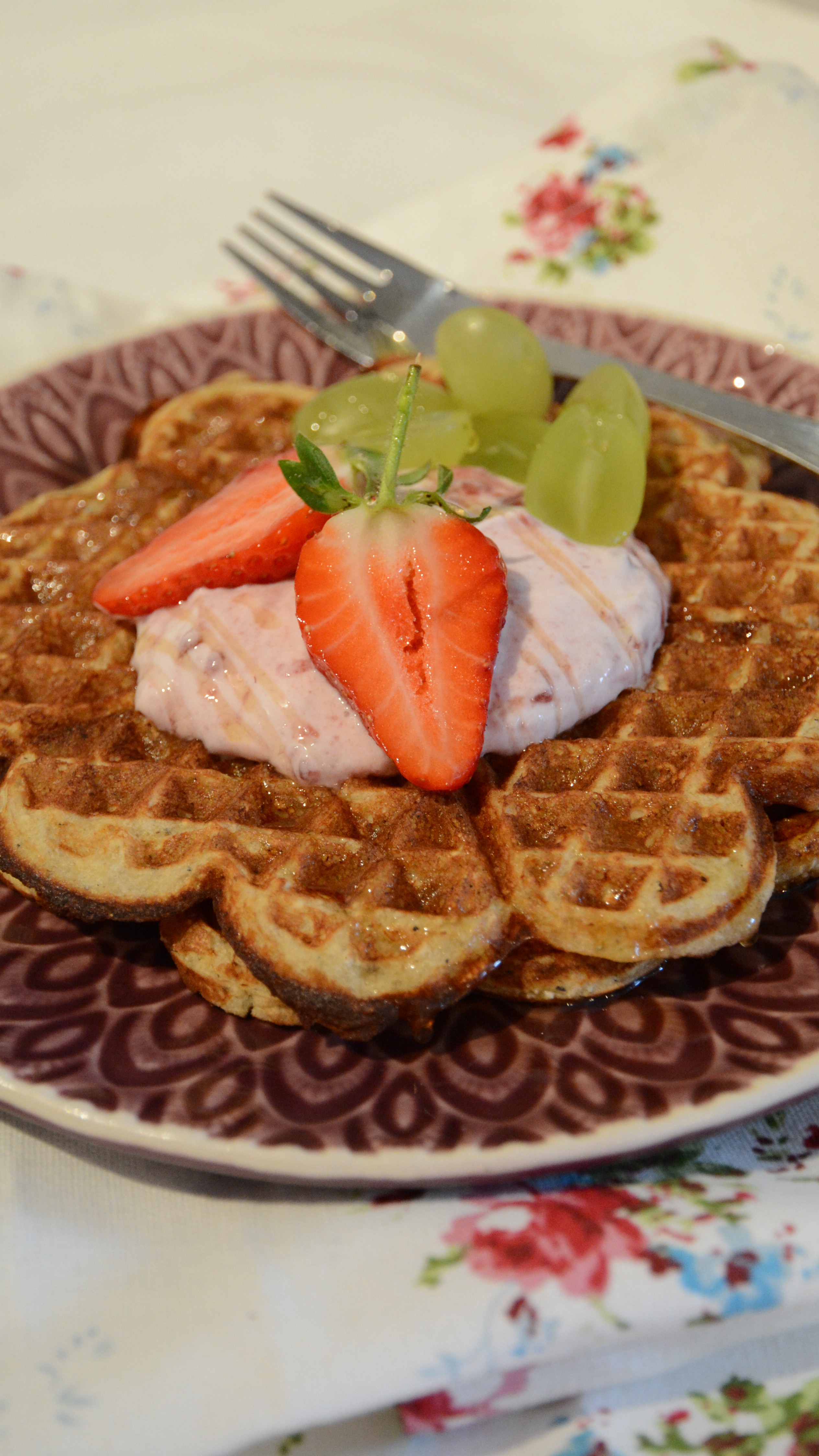 Mixa samtliga ingredienser slätt. Grädda 2-3 våfflor av smeten. (1 ägg = 2 våfflor, 2 ägg = 3 våfflor).