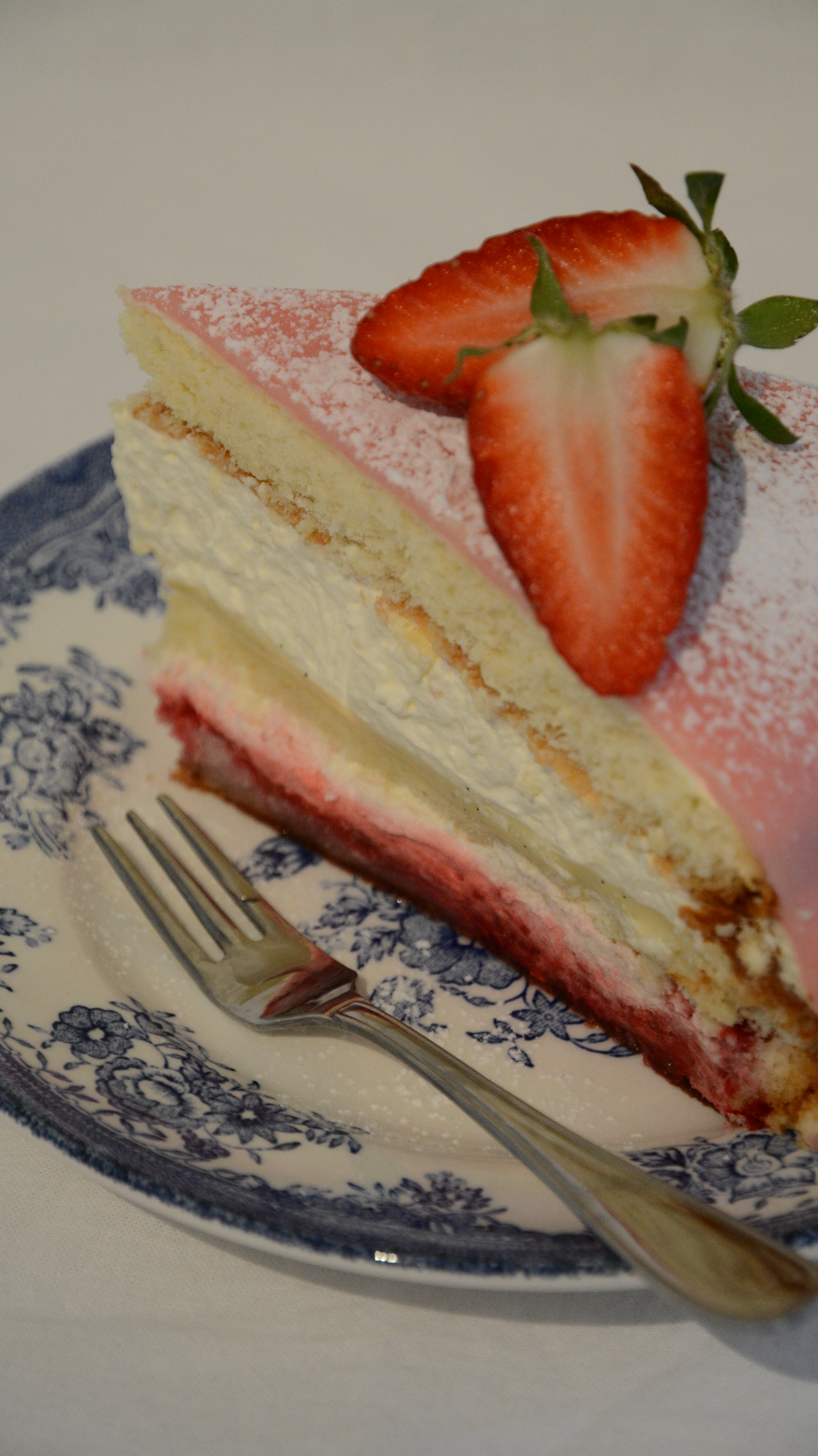 Med mycket friska hallon i tårtan och vanilj i grädden blir tårtan som jag vill ha den. Vaniljkräm och luftig tårtbotten är förstås hemlagade, det blir inte gott med färdigköpta varianter.