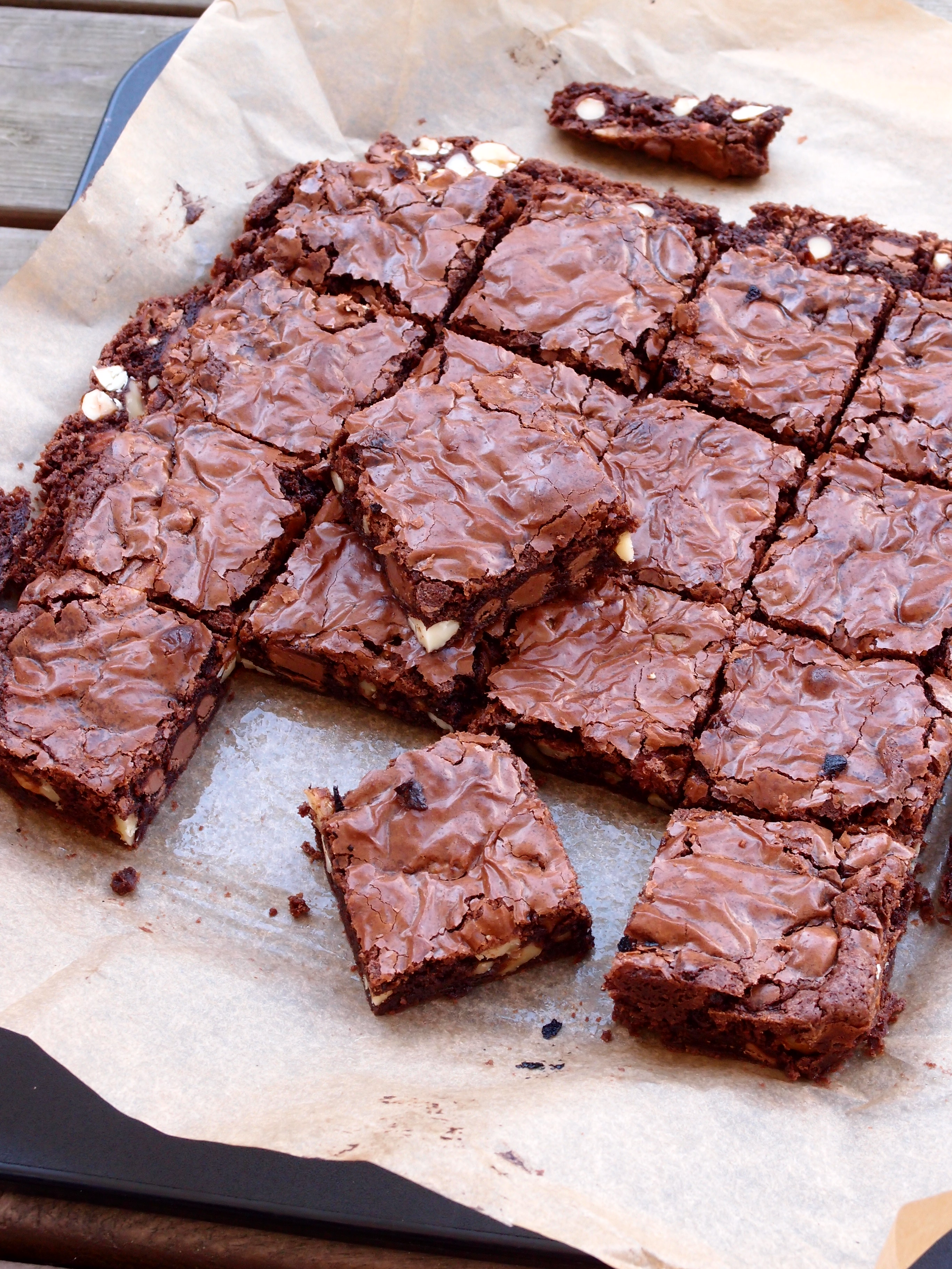 Frasig, krackelerad yta och chokladigt segt inre med crunch och smak från nötter. Yammey!