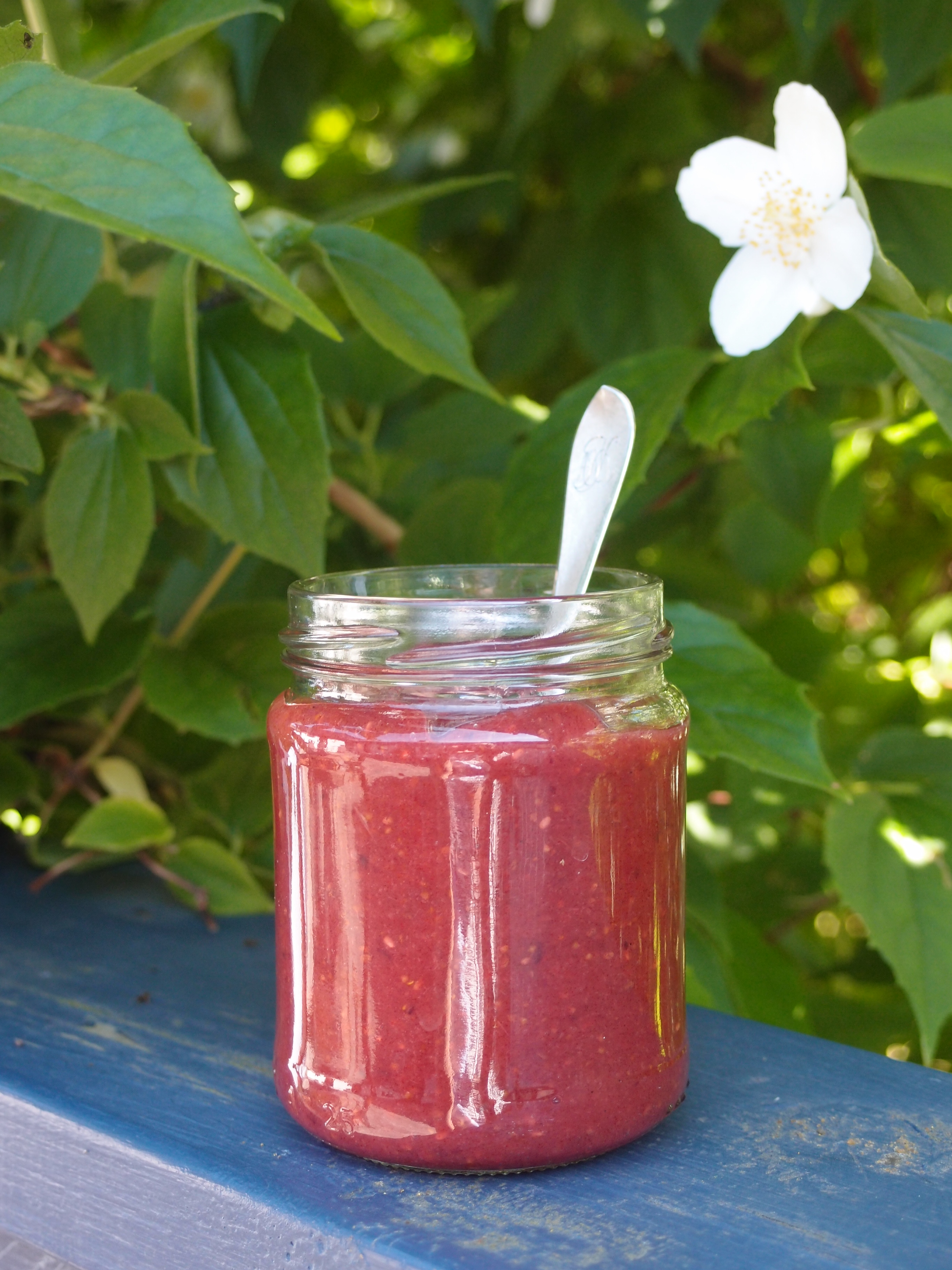 Det går även att göra sylt utan socker! Det smakar förstås inte likadant eller lika sött men är mycket hälsosammare. Dadlar ger sötma och chiafrön konsistens. Säkerligen gott att göra på andra bär också – om inte godare på exempelvis hallon.