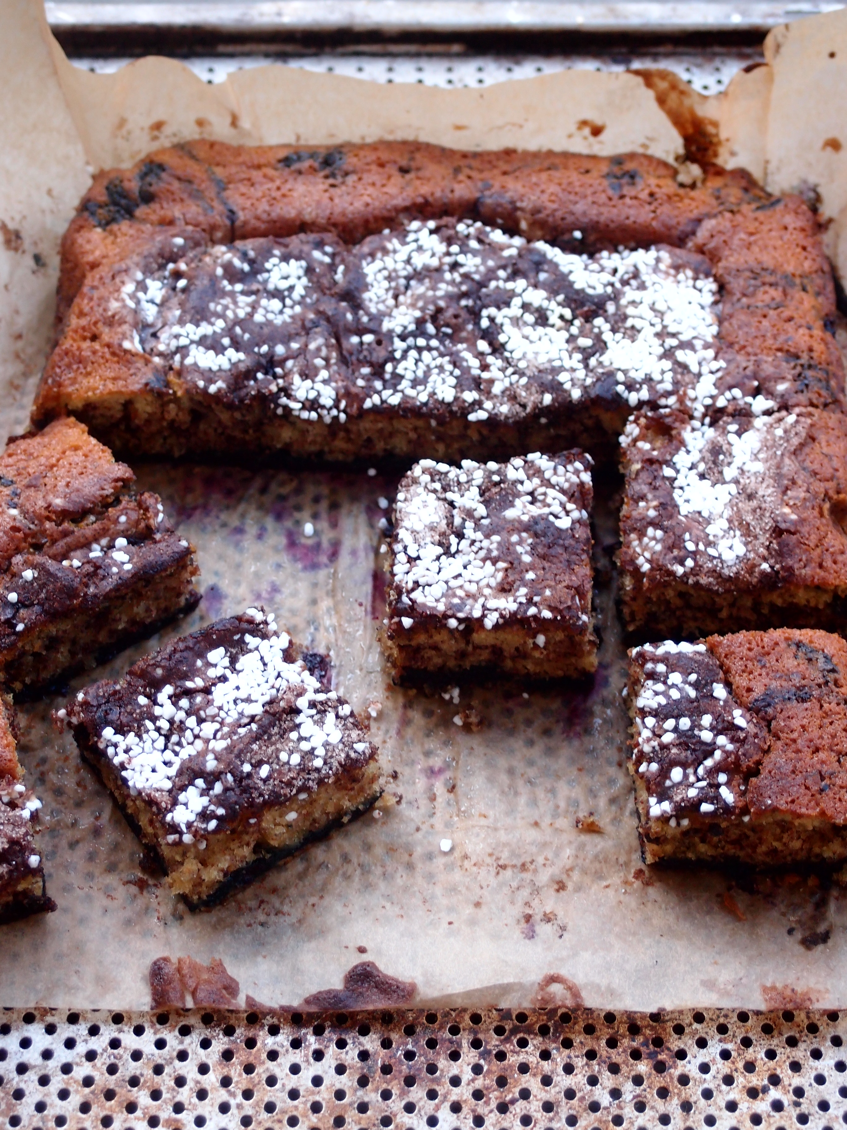 Kakan är inte bränd i botten, det är bara blåbären som sjunkit ner en bit. Kanel och blåbär ”missfärgar” alltså utseendet en aning, men låt dig inte luras – smaken är såå god!