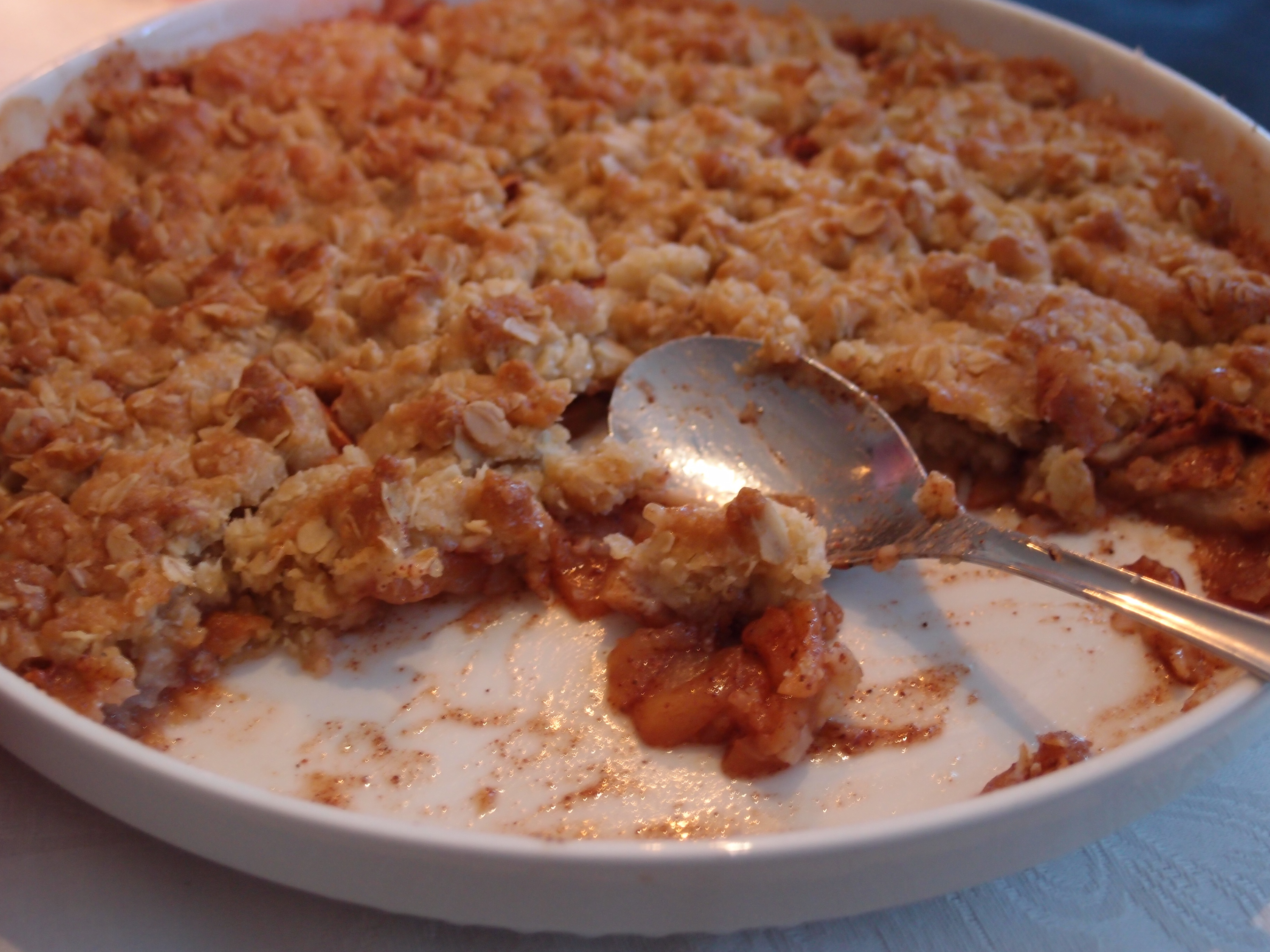 Under det goda och crunchiga täcket gömmer sig mjuka äppelbitar med smak av kanel. En rejäl och smakrik paj som blir underbar med vaniljsås, grädde eller glass.