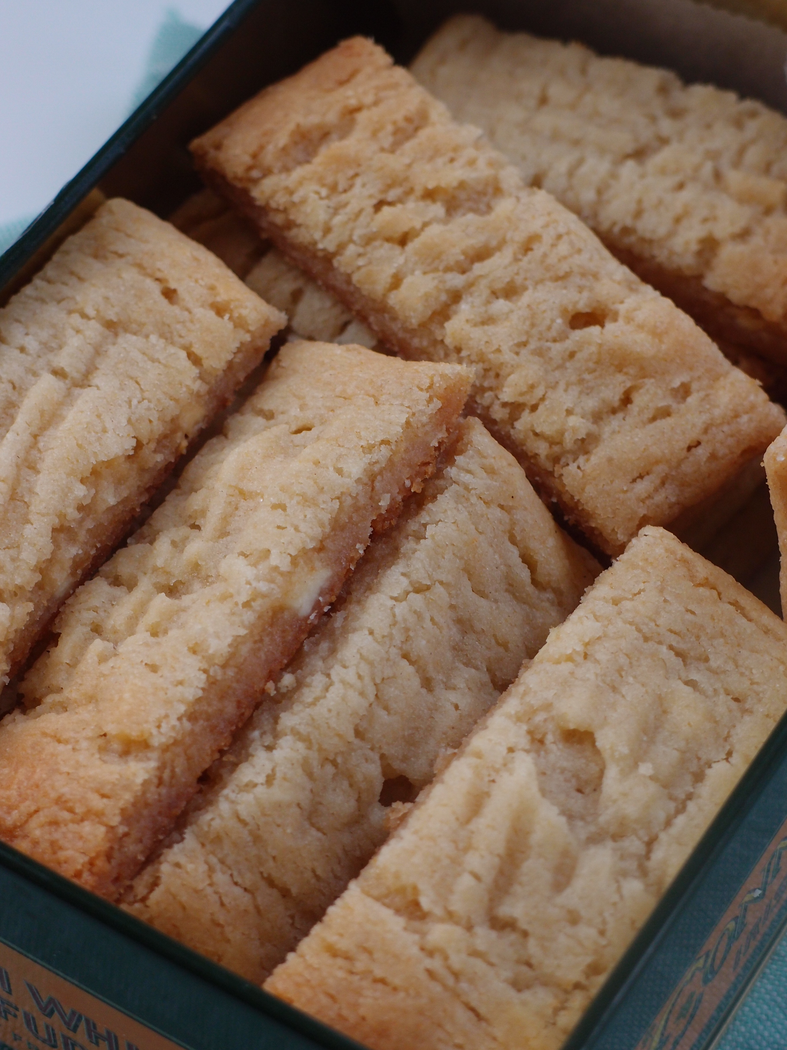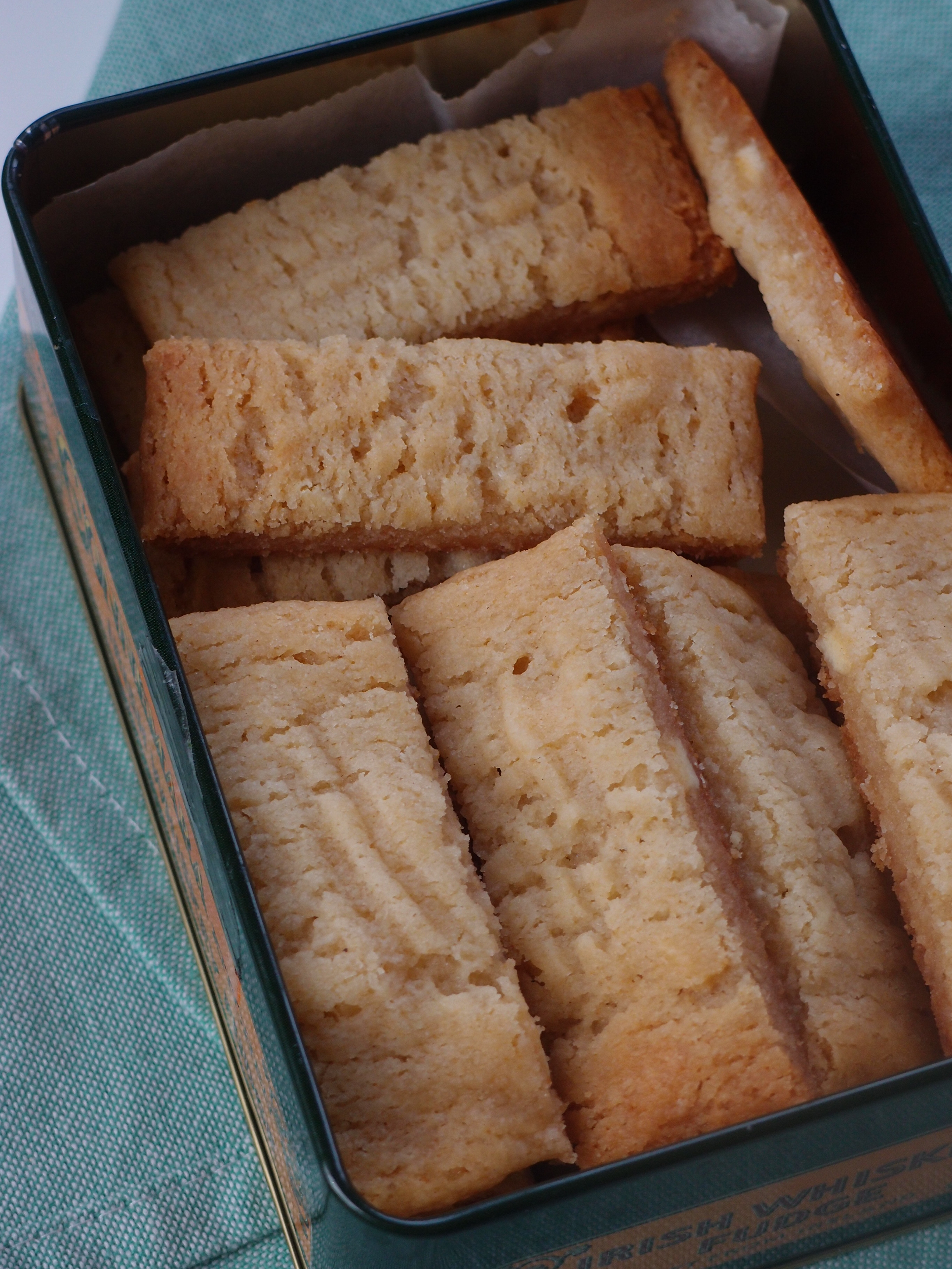 Blanda samman smör, vetemjöl, socker, sirap, vanilj, bakpulver och salt till en deg (den ska inte kännas torr) med elvisp eller i en matberedare. Tillsätt hackad vit choklad och rulla ut till två längder på en plåt med bakplåtspapper. Tryck till längderna lite lätt. Tryck ev till ett mönster med hjälp av en gaffel. Grädda i mitten av ugnen i ca 10 min. De ska få lite färg i kanterna men inte för mycket – jag gillar dem sega, inte hårda. Låt svalna en stund på plåten och skär sedan i snittar.