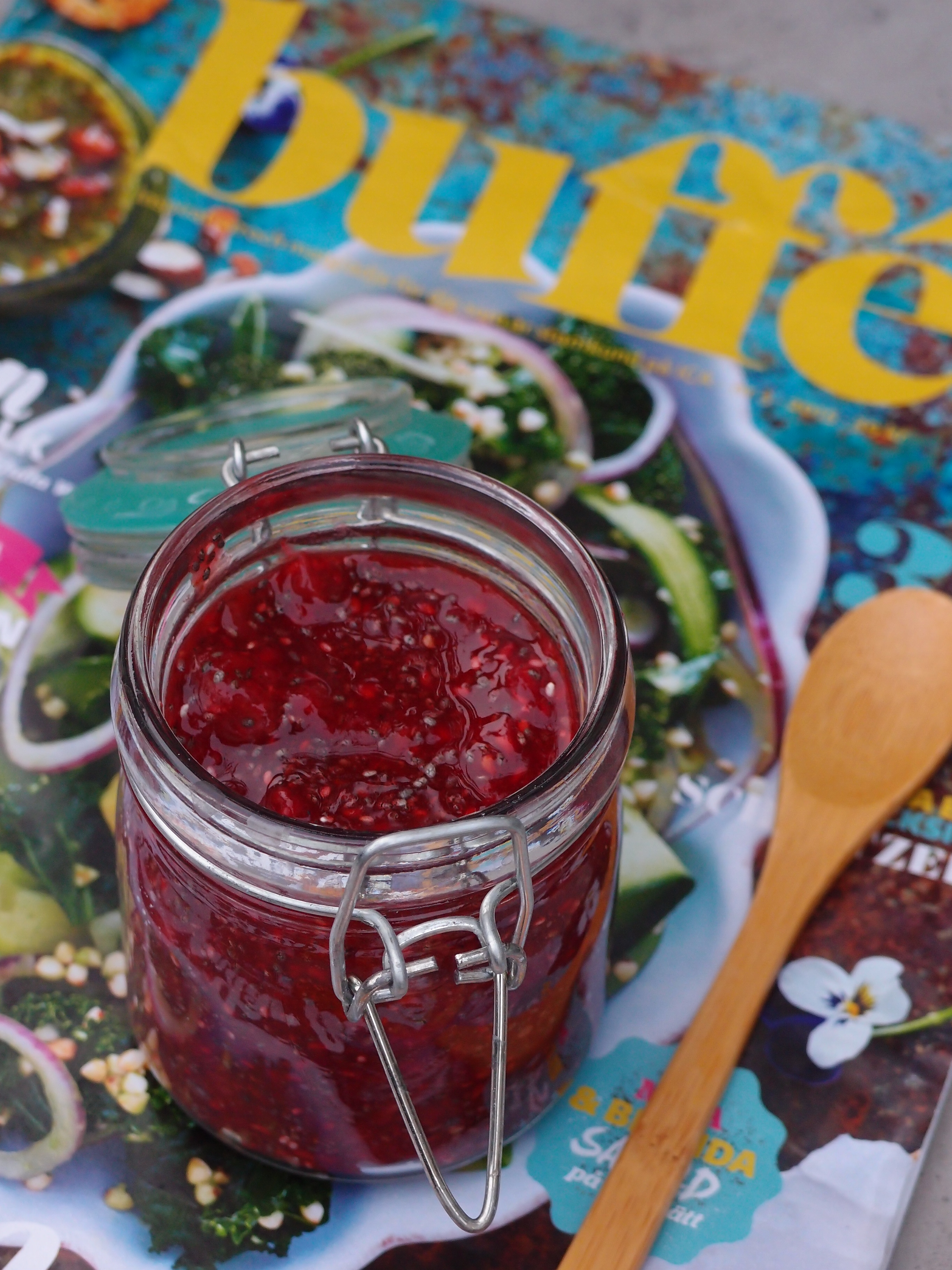 Det här smarta tipset hittade jag i ICA:s tidning buffé; raw bärsylt. En sylt du slipper koka eller söta med socker. Lösningen heter chiafrön. Supersmart tycker jag och sylten är grymt god!